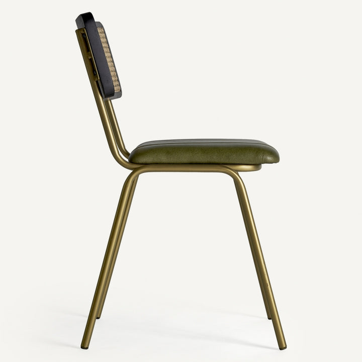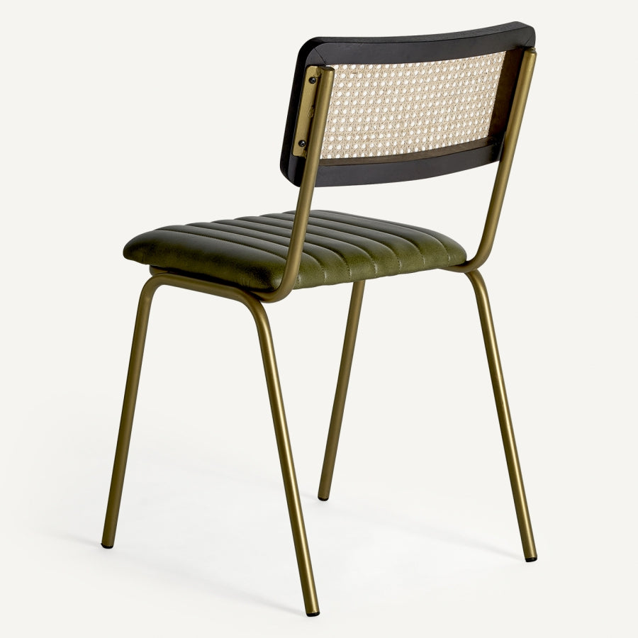 Stile vintage decò, pensato per ambienti eleganti e sofisticati, questa sedia unisce materiali pregiati e un design ricercato. Realizzata con una seduta in pelle verde, una struttura in ferro e dettagli in rattan, offre robustezza e comfort eccezionale. Con una seduta di 40 x 36 cm, un’altezza di 49 cm dal pavimento e uno schienale ergonomico, questa sedia è perfetta per soggiorni, studi o spazi di classe. Capace di sostenere fino a 100 kg, si distingue per il suo equilibrio tra estetica e funzionalità. Una scelta ideale per chi cerca una sedia elegante e di qualità, capace di arricchire ogni ambiente con un tocco di stile.