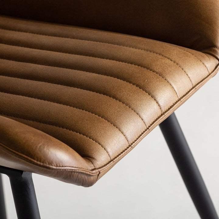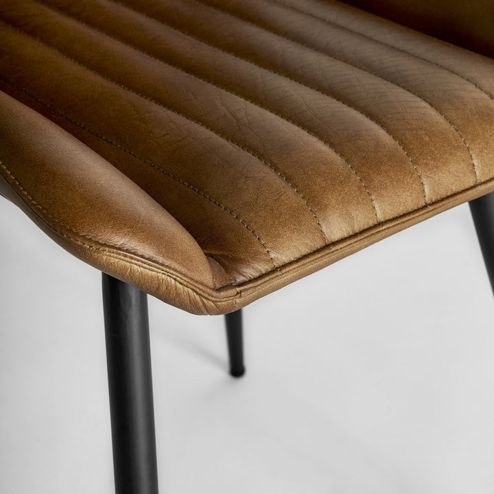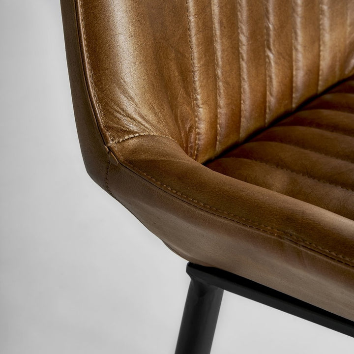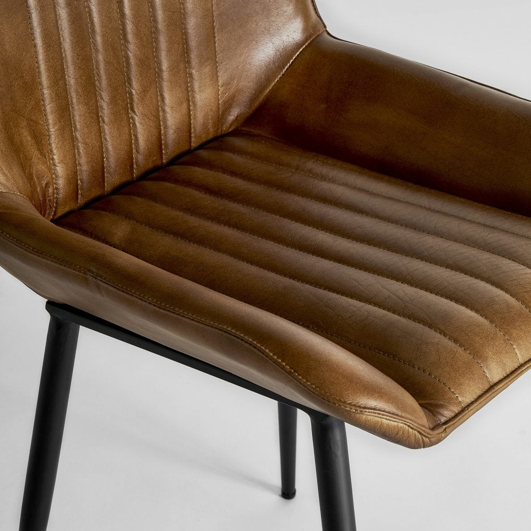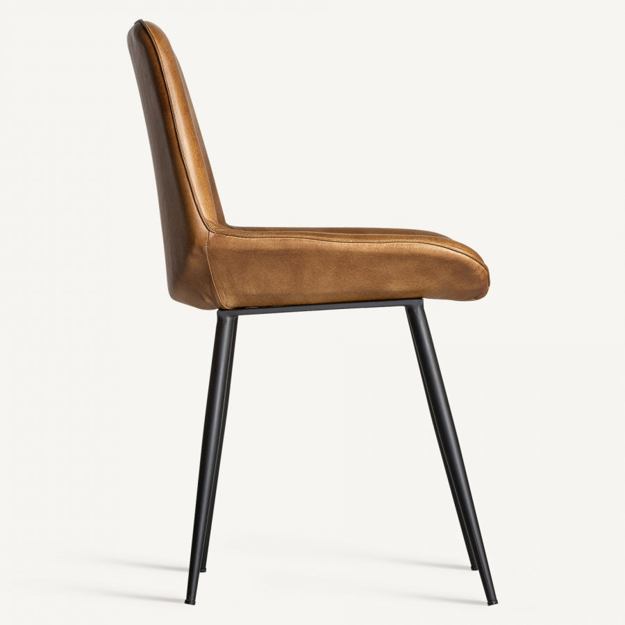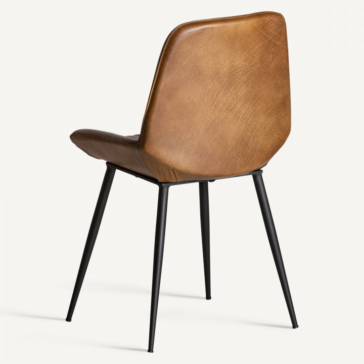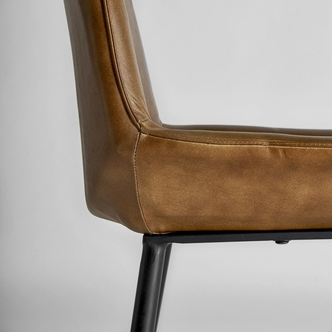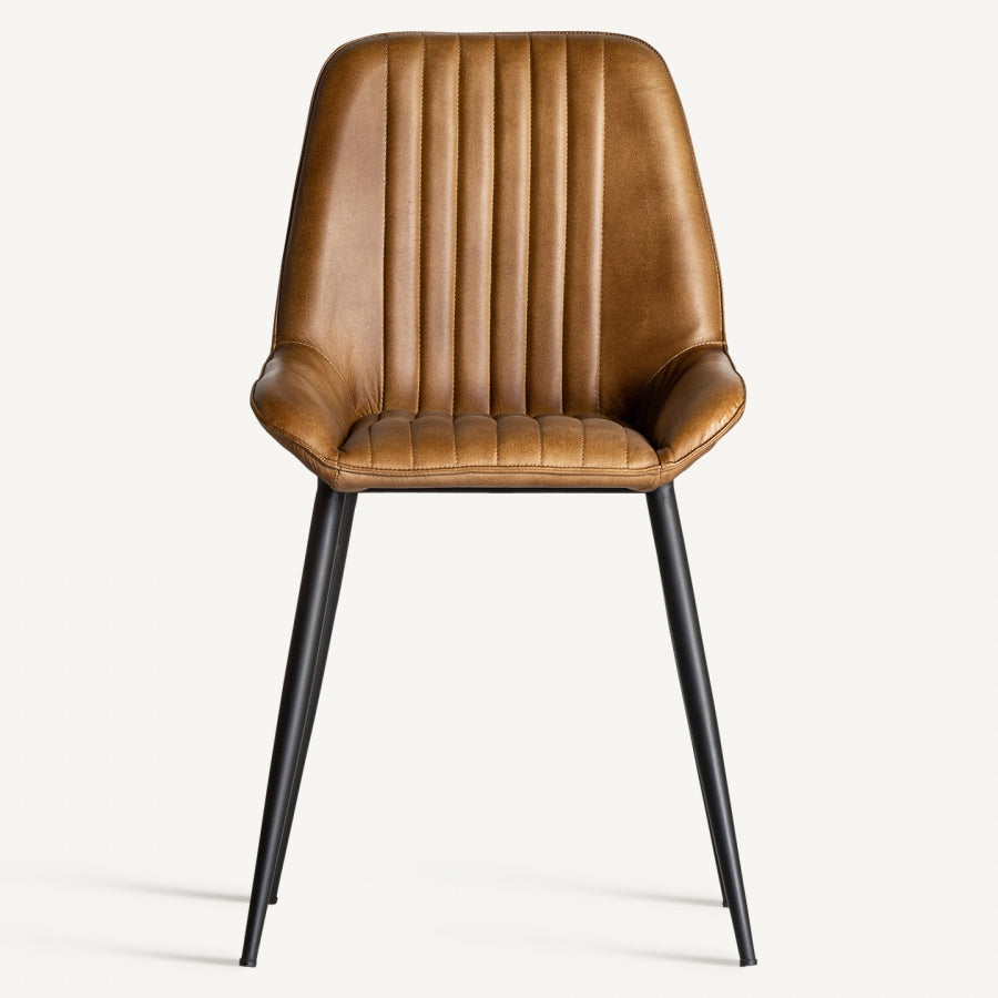 Eleva il tuo spazio con questa raffinata sedia dal design vintage. L'armoniosa combinazione di pelle color cammello, ferro e schiuma conferisce alla sedia un look classico, garantendo al contempo comfort e durata.