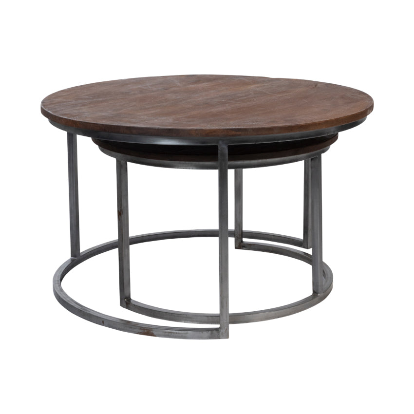 Set 2 Tavolini Rotondi Industrial in Legno e Ferro
