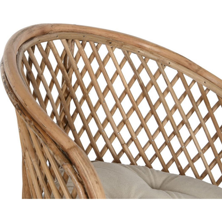 Materiali Struttura in bamboo + rattan intrecciato + cuscino imbottito