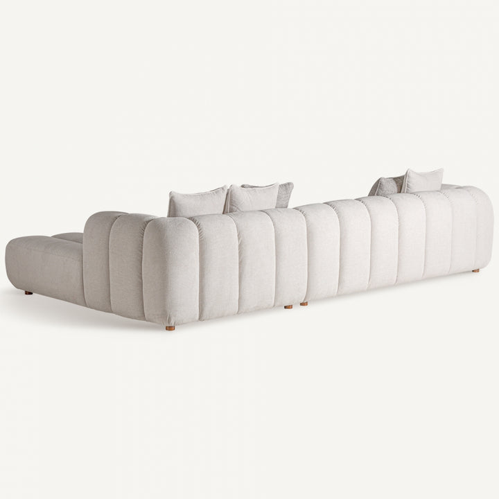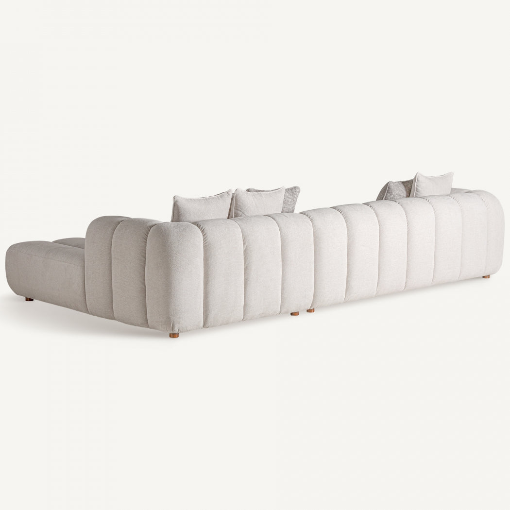 Lo stile Art Déco incontra il design moderno in questo sofà di lusso, perfetto per arredare living contemporanei e spazi eleganti. Realizzato in poliestere idrorepellente di colore bianco sporco e sostenuto da una struttura in legno massello di eucalipto, questo sofà unisce estetica e funzionalità in un complemento d’arredo esclusivo. Con dimensioni di cm 360 x 200 H 90 e un peso di 126 kg, offre spazio per cinque persone, rendendolo ideale per chi cerca divani moderni di grandi dimensioni. La seduta ampia (298 x 68 x 43 cm) e lo schienale ergonomico garantiscono il massimo comfort, mentre le parti staccabili facilitano il trasporto e la manutenzione. Il tessuto speciale "Garden" con finitura resinata lo rende perfetto anche per arredamento outdoor, unendo resistenza agli agenti atmosferici e uno stile raffinato. Ideale per chi cerca divani living moderni, divani in stile Art Déco, o arredi di lusso per esterni, questo sofà è completato da cuscini inclusi e un sistema a parete per maggiore stabilità. Un pezzo unico per arricchire ambienti eleganti e sofisticati con un tocco di design senza tempo.