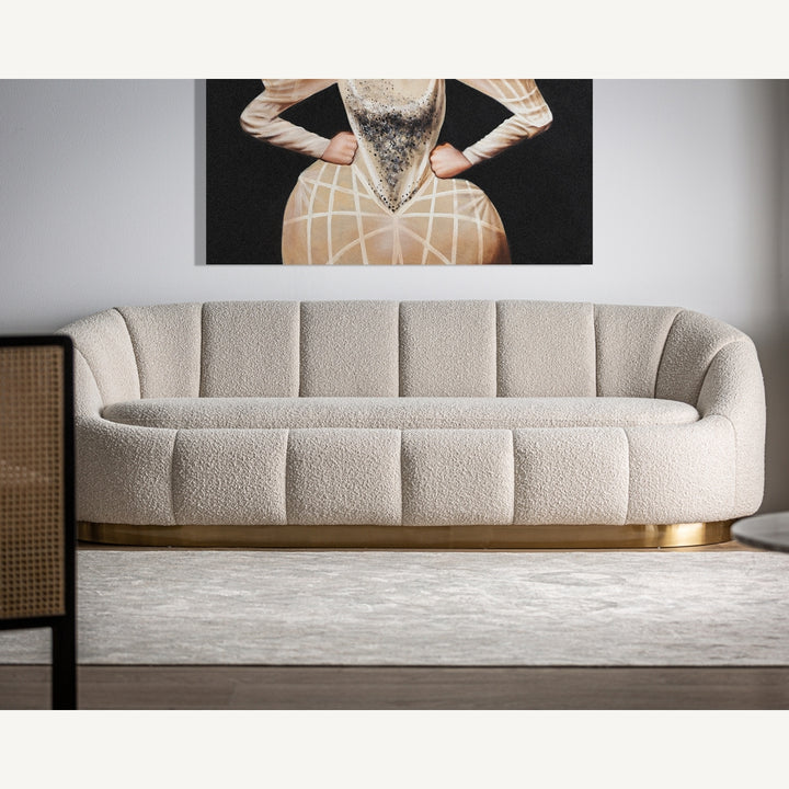 Sofà Bouclé Bianco/Oro Stile Art Déco - Eleganza senza Tempo