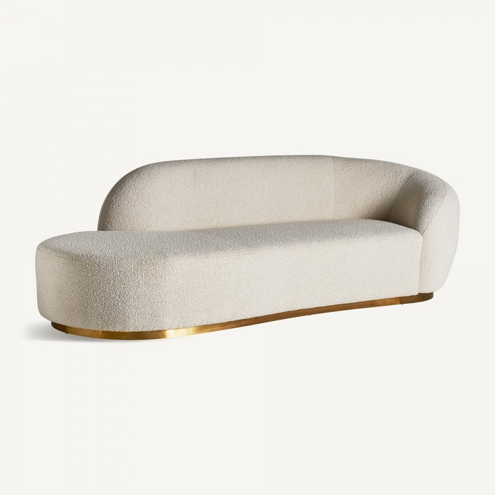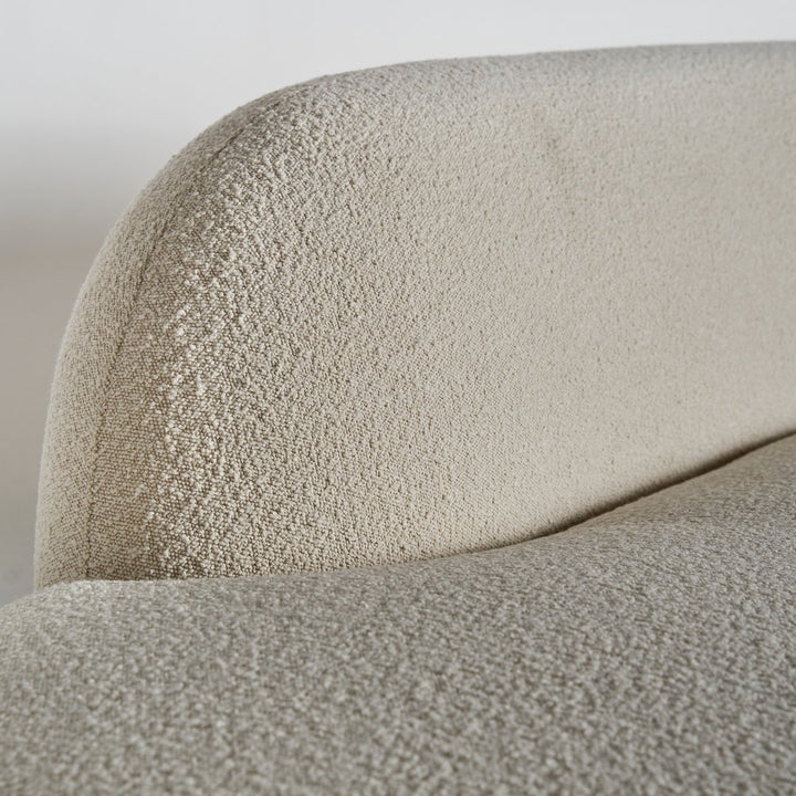 Materiali di Qualità: Realizzato con acciaio di alta qualità combinato con poliestere e bouclé di cotone, il nostro sofà è un connubio di stile e resistenza. La struttura è progettata per sostenere un peso fino a 260 kg.