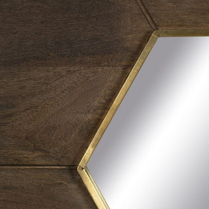 Materiali Legno di mango marrone intagliato + specchio esagonale