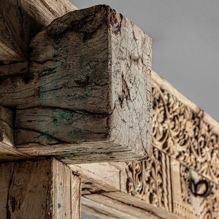 Specchio Etnico in Legno di Teak con Finitura Invecchiata