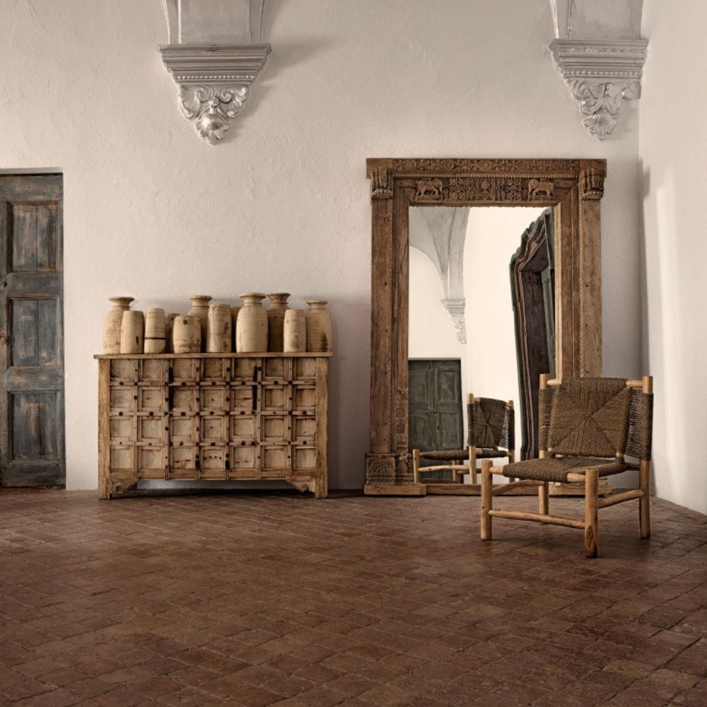 Uno specchio dallo stile etnico e materico, ideale per ambienti che vogliono esprimere autenticità e forza estetica attraverso materiali naturali e lavorazioni artigianali. Realizzato artigianalmente in legno massello di teak con finitura marrone invecchiata, è abbinato a uno specchio che dona luminosità ed equilibrio al suo aspetto robusto e importante. Le dimensioni generose lo rendono perfetto come elemento decorativo a tutta parete, ideale per soggiorni, ingressi o camere da letto in stile etnico, coloniale o rustico. Ogni pezzo è unico, con venature, nodi e imperfezioni che raccontano la storia del legno. Con un peso di 118,7 kg, è stabile e solido, pensato per chi cerca un arredo di grande impatto visivo e valore artigianale.