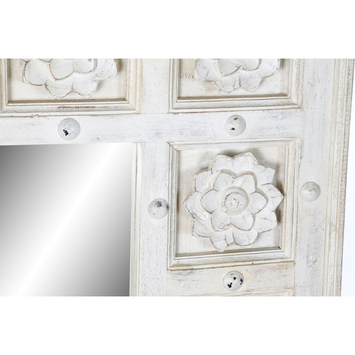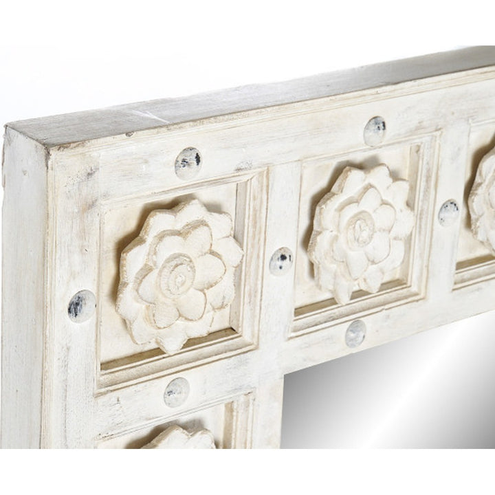 Materiali Legno di mango decapato bianco + intarsi artigianali + specchio