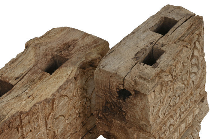 Queste sculture rappresentano lo stile etnico, combinando arte tradizionale e materiali naturali. Realizzate in legno di teak intagliato, portano un tocco autentico e unico agli spazi abitativi, ideali per chi cerca elementi decorativi con una forte personalità. Il set include due sculture di dimensioni 38 x 30 x 30 cm, perfette per completare ambienti in stile etnico o rustico. L’intaglio artigianale valorizza il materiale, esaltando le venature e le sfumature naturali del teak. Queste sculture sono un'aggiunta decorativa ideale per soggiorni, sale da pranzo e uffici, offrendo un pezzo unico e inimitabile che incarna la bellezza della lavorazione manuale e il fascino del legno naturale.