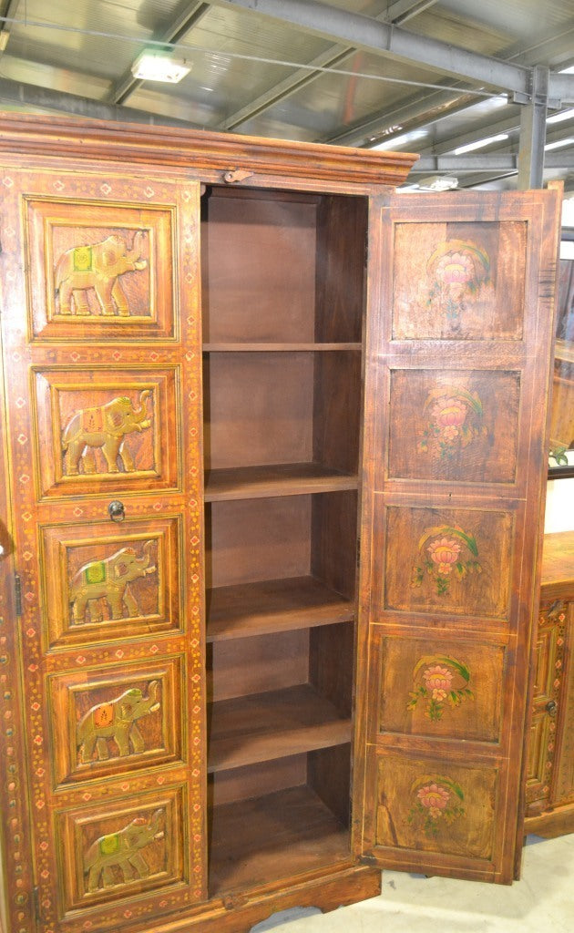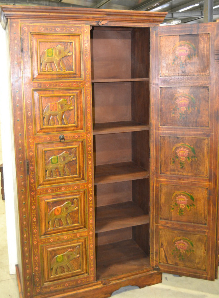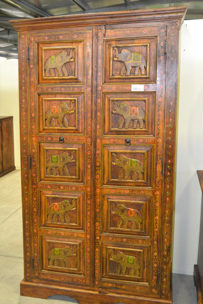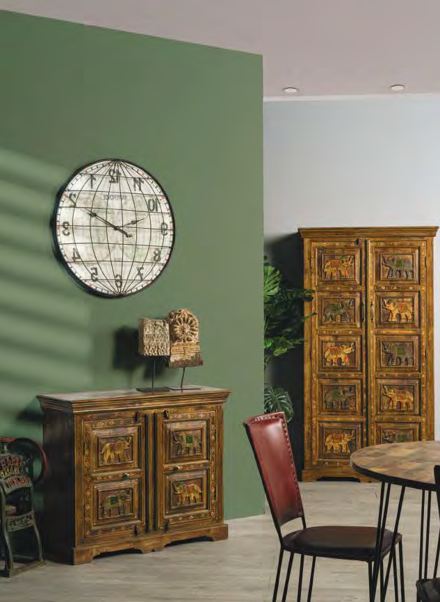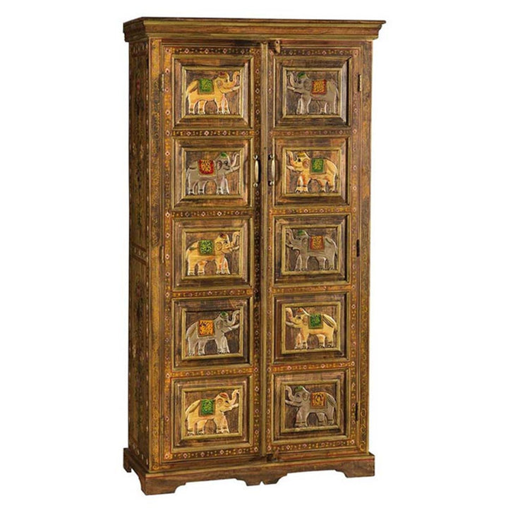 Lo stile etnico-coloniale unisce eleganza e tradizione, portando un tocco distintivo nei tuoi spazi. Il nostro stipo dipinto etnico-coloniale è realizzato e intarsiato a mano, con un corpo in legno massello di sheesham (palissandro indiano). Le dimensioni di 100 cm di larghezza, 40 cm di profondità e 180 cm di altezza lo rendono perfetto per ogni ambiente. Dotato di 2 ante con intarsi di elefanti, questo mobile è dipinto a mano e offre 4 ripiani interni in legno massello. Rifinito e verniciato, è una scelta ideale per chi cerca artigianato etnico coloniale, aggiungendo un pezzo unico e affascinante alla tua casa.