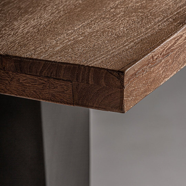 Realizzato in legno di mango nero, presenta una superficie resistente e dal fascino vintage, mentre la struttura in ferro naturale assicura solidità e robustezza. Prodotto staccabile per un trasporto e montaggio agevoli. Ideale per bar, loft o spazi dal gusto industrial, è un elemento d’arredo funzionale e di grande impatto estetico.