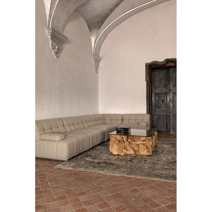 Tavolino in Cristallo con Base in Radice di Teak Naturale