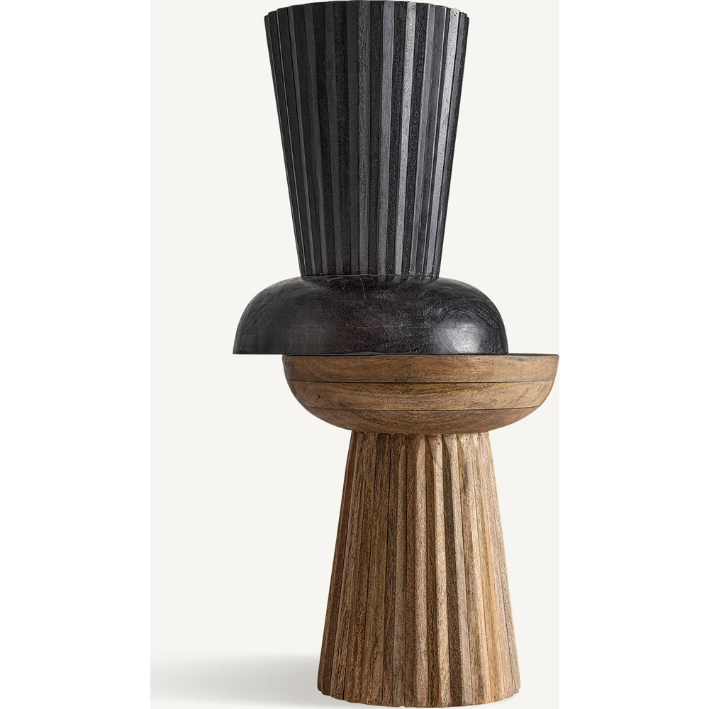 Tavolino Alto Rotondo Plissettato in Legno di Mango Naturale