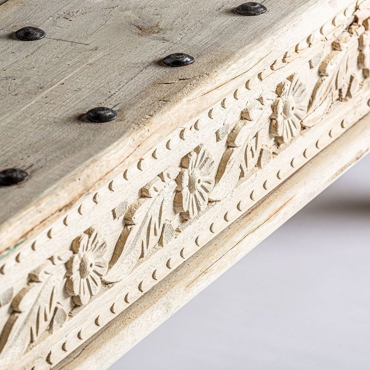 Tavolino Orientale in Legno di Mango Crema Invecchiato
