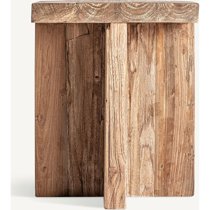 NOTE: Teak riciclato naturale, piano spesso 5 cm, piedini regolabili, portata 50 kg, peso 15 kg, realizzato a mano con finitura resistente all’esterno.