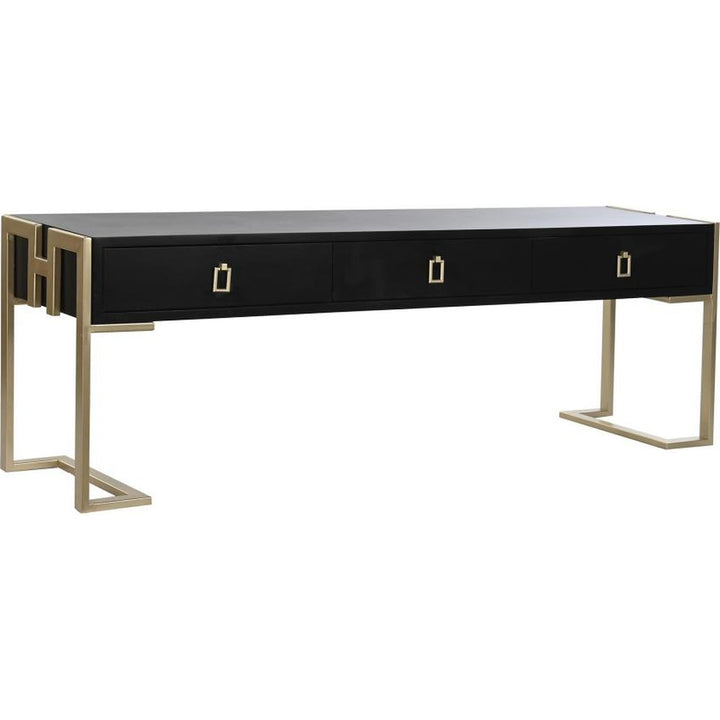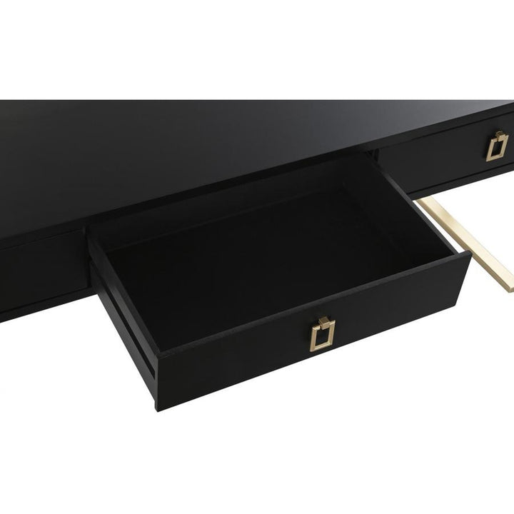 Il tavolino vintage chic nero unisce eleganza classica e dettagli luminosi, grazie alla struttura in legno verniciato nero e agli inserti in metallo dorato su piedi e maniglie. Dotato di tre cassetti frontali (45 x 28 x 10 cm), è perfetto come tavolino basso, mobile TV o raffinato complemento per un living contemporaneo. Il suo stile si integra armoniosamente negli interni vintage chic, ma anche in spazi dal gusto retrò elegante. La struttura in legno massello e i dettagli metallici conferiscono un aspetto di lusso, chic e di pregio. Disponibile anche nel nostro Outlet Arredamento di Lusso con sconti fino al 70%.