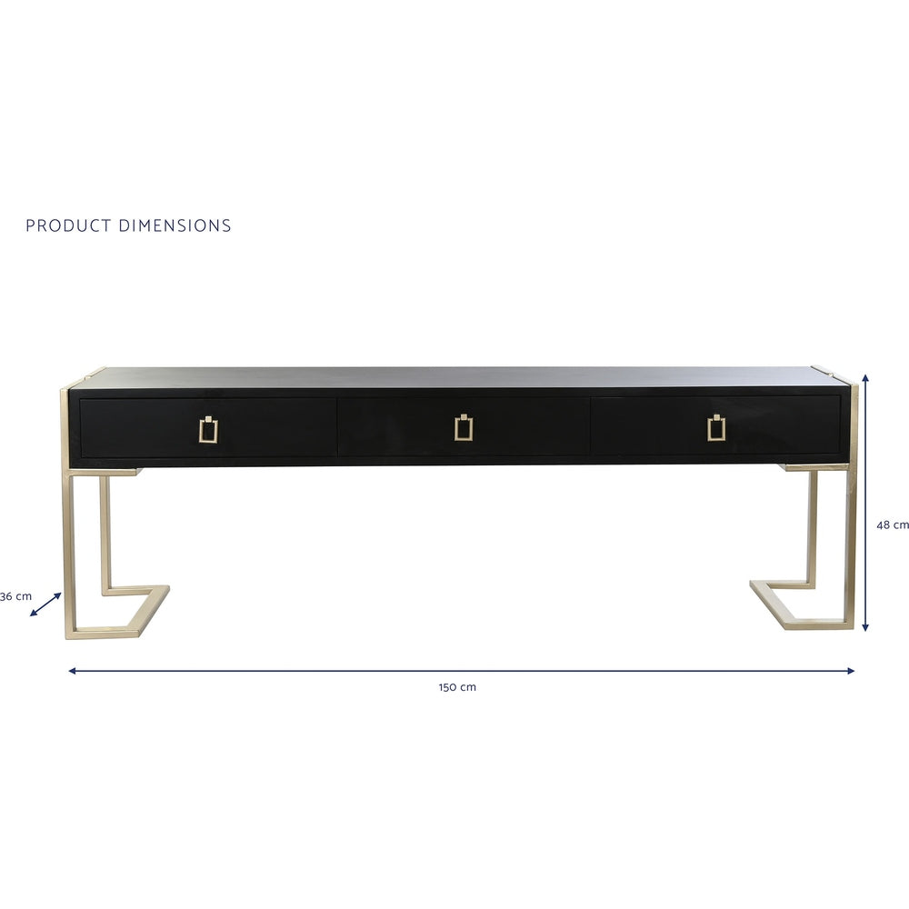 NOTE: Peso 18 kg; 3 cassetti (45x28x10 cm); struttura in legno nero; piedi e maniglie in metallo dorato; stile vintage chic.