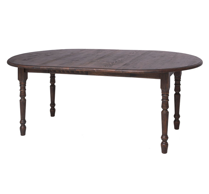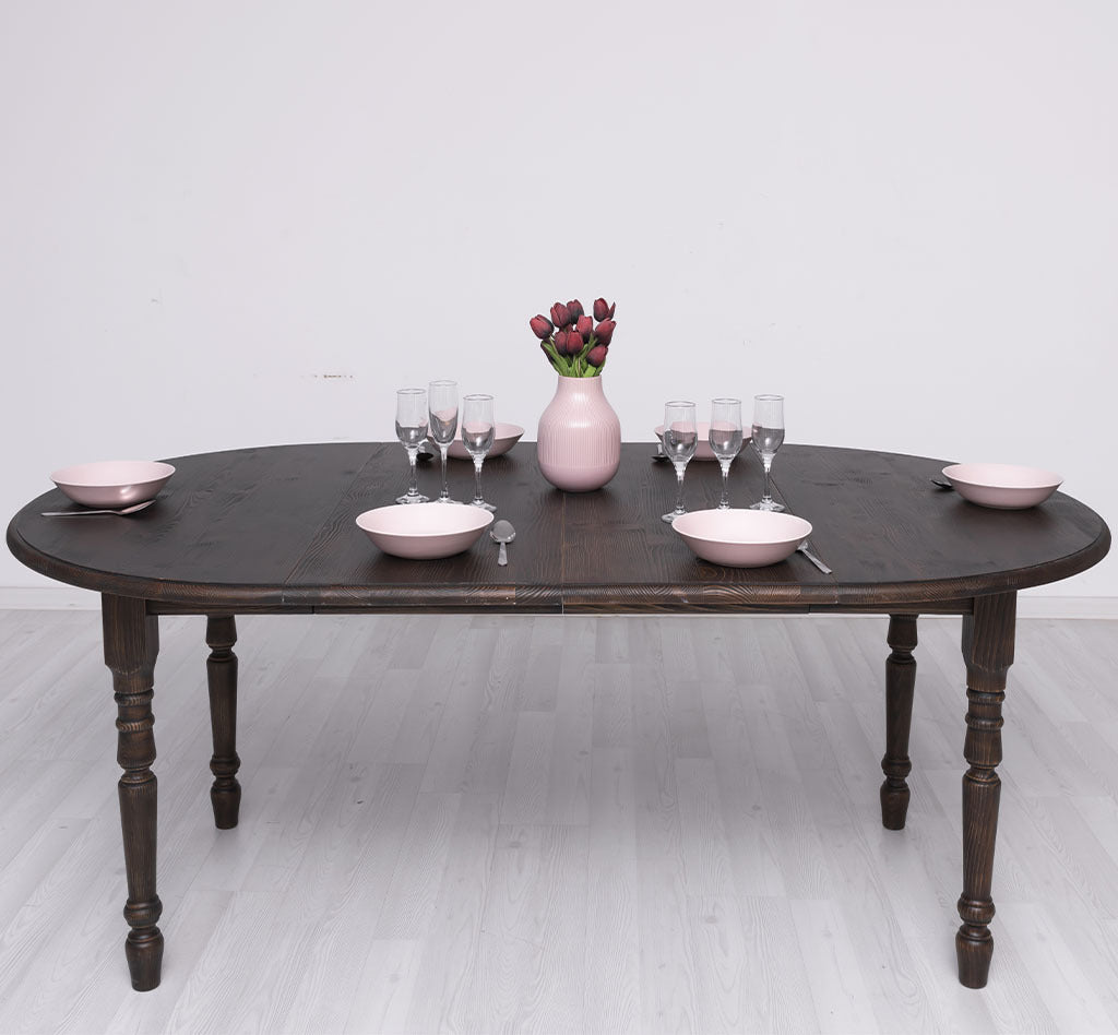 Il tavolo viene consegnato con le gambe smontate per facilitare il trasporto, ed è accompagnato da tutti gli accessori necessari per un montaggio semplice. La sua struttura solida garantisce un utilizzo duraturo nel tempo. Senza le prolunghe, ha un diametro di 116 cm, perfetto per un uso quotidiano in spazi ridotti. Grazie al suo design classico con gambe tornite, questo tavolo aggiunge un tocco di eleganza classica alla cucina o al soggiorno. Funzionalità e design si combinano per creare un ambiente accogliente, ideale per momenti conviviali con la famiglia o gli amici. Disponibile anche in altre misure e colori su richiesta.