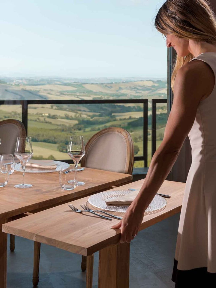 Immergetevi nel fascino del design minimalista con il nostro tavolo allungabile in legno massello di teak naturale cerato. Questo tavolo, ideale per chi cerca eleganza e versatilità, si espande facilmente da 190 a 270 cm mediante due prolunghe da 40 cm ciascuna, perfette per adattarsi a qualsiasi tipo di incontro, da cene intime a grandi riunioni. Le prolunghe, facilmente riponibili in un apposito vano con guide integrato sotto il piano del tavolo, assicurano praticità e ordine. La finitura cerata del teak naturale non solo protegge il legno ma ne esalta anche le calde venature e il colore dorato, contribuendo a creare un ambiente accogliente e raffinato. Con dimensioni di 100 x 190 / 270 x 76 cm e un piano di 3 cm di spessore, questo tavolo da pranzo artigianale è la scelta perfetta per chi desidera coniugare funzionalità e stile in un ambiente domestico elegante.