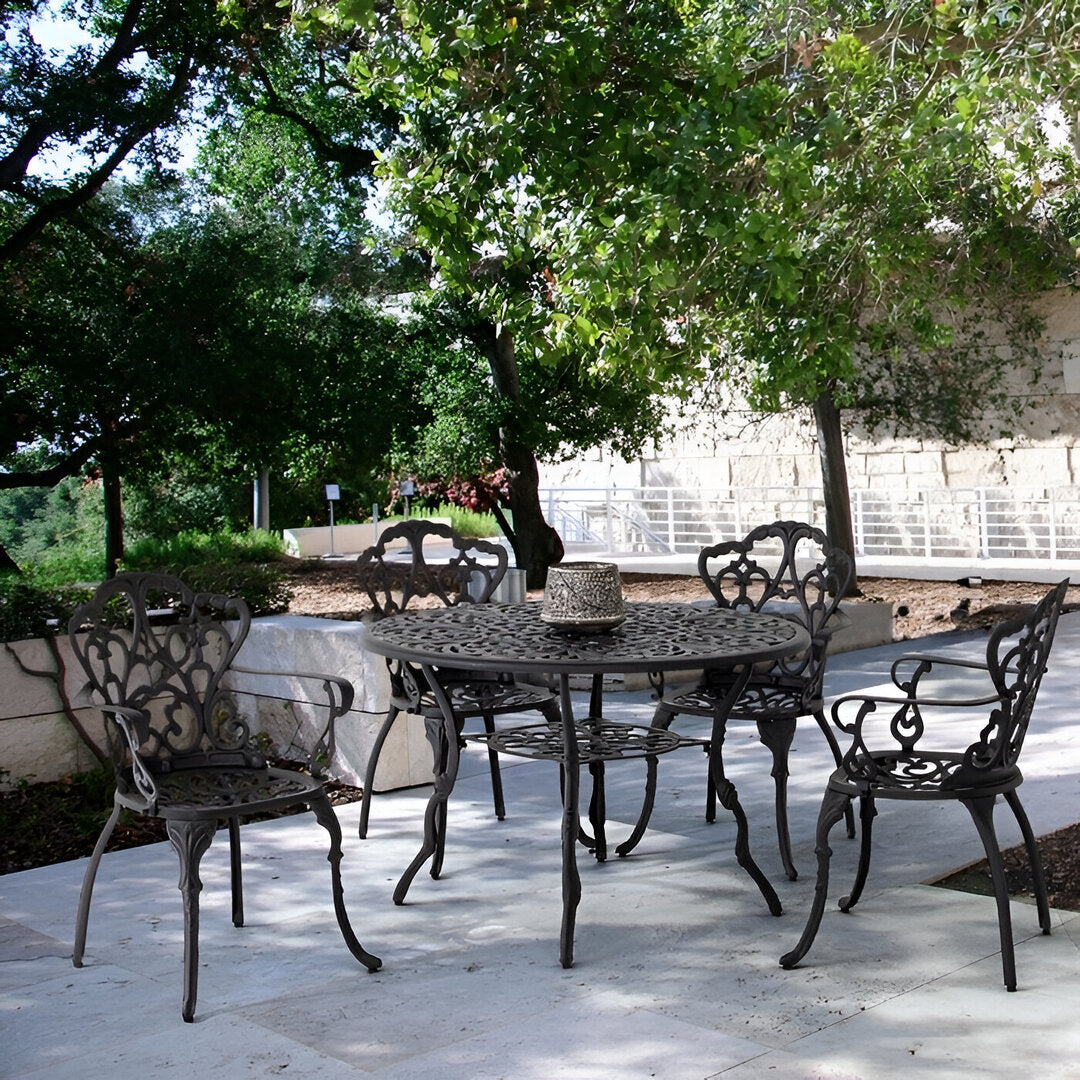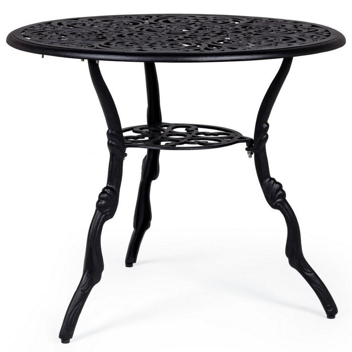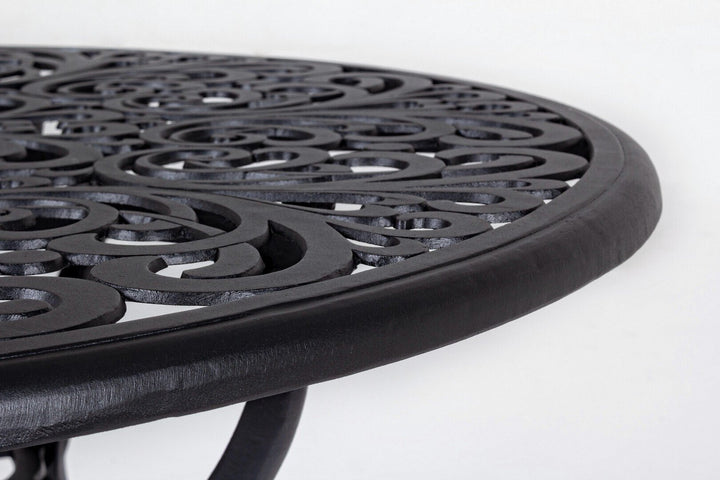 Lo stile provenzale si esprime attraverso questo elegante tavolo da giardino, perfetto per creare un’atmosfera raffinata in spazi esterni. Realizzato in lega di alluminio pressofuso con verniciatura a polvere nera opaca, garantisce resistenza agli agenti atmosferici e durabilità nel tempo. La struttura decorata con motivi traforati aggiunge un tocco di romanticismo e leggerezza, tipici del design provenzale. Con dimensioni di cm 80 x 80 H 67, questo tavolo rotondo fisso è ideale per ospitare fino a tre persone, rendendolo perfetto per pranzi o cene all’aperto. La viteria in acciaio inossidabile contribuisce alla solidità della struttura, mentre il design leggero ma stabile lo rende facile da assemblare e spostare. Perfetto per chi cerca tavoli provenzali che uniscano estetica e funzionalità, questo complemento è la scelta ideale per giardini, terrazze o verande. Un pezzo unico per aggiungere stile e praticità agli spazi esterni.