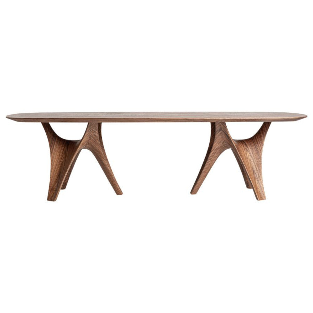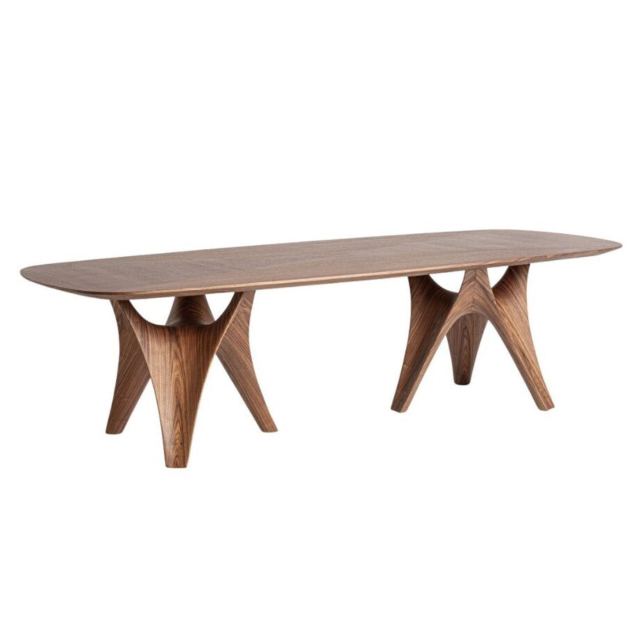 Lo stile contemporaneo si distingue per le sue linee pulite, materiali di qualità e un design minimalista che si adatta perfettamente a spazi moderni ed eleganti. Perfetto per chi cerca tavoli contemporanei zona living, questo modello unisce estetica e funzionalità, diventando il protagonista di una sala da pranzo raffinata o di un open space moderno. Realizzato in legno MDF con impiallacciatura in noce colore marrone naturale e dettagli in fibra di vetro, è un pezzo artigianale che presenta leggere variazioni di tonalità e imperfezioni naturali come nodi e segni, che ne esaltano l'unicità. Il piano spesso 4,5 cm offre solidità e resistenza, mentre le gambe staccabili facilitano il trasporto. Spazio tra le gambe: 65 cm, distanza bordo-gamba: 15x37 cm. Peso complessivo: 117,5 kg. Capienza ideale per 8 commensali. Inclusi accessori in ferro per il montaggio. Un tavolo dal design ricercato, perfetto per arredare con stile e funzionalità.