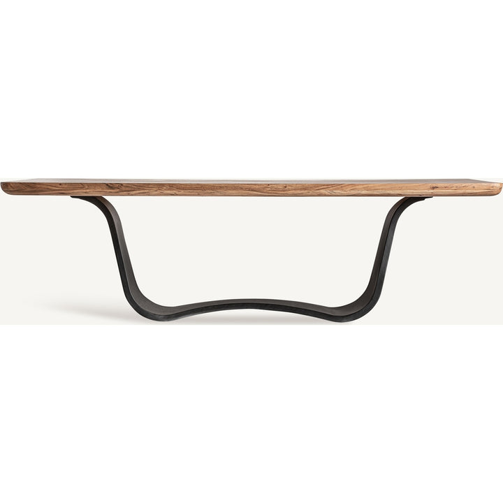 Lo stile Art Déco è Charleston e luce retrò. Il Tavolo da Pranzo Art Déco è scolpito in acacia nero, con base ferro marrone che abbraccia il piano. Con peso di 132,5 kg, presenta gambe smontabili e venature uniche. Ogni nodo è un applauso. Perfetto per sale luxury e loft, ospita 10 coperti con glamour. Proposto con sconti fino al 70% su Ethnic Chic.