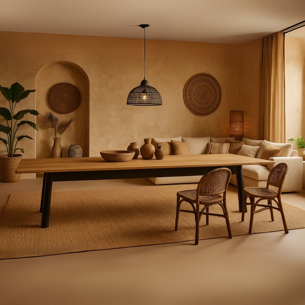Frutto della collaborazione tra VICALDESIGN e lo studio Francesc Rifé, questo tavolo incarna un linguaggio progettuale basato su materialità, proporzione e rispetto del legno. La struttura a piani paralleli esprime ordine e raffinatezza, valorizzando il contrasto tra il rovere chiaro e il mango nero. Interamente realizzato a mano, ogni pezzo è unico, con venature, crepe e segni che raccontano la naturale imperfezione della materia. Con i suoi 400 cm di larghezza, diventa il punto focale della sala da pranzo o di ambienti contract di prestigio, coniugando funzionalità ed estetica contemporanea in perfetto equilibrio. Un capolavoro di design per chi ricerca eleganza e presenza architettonica.