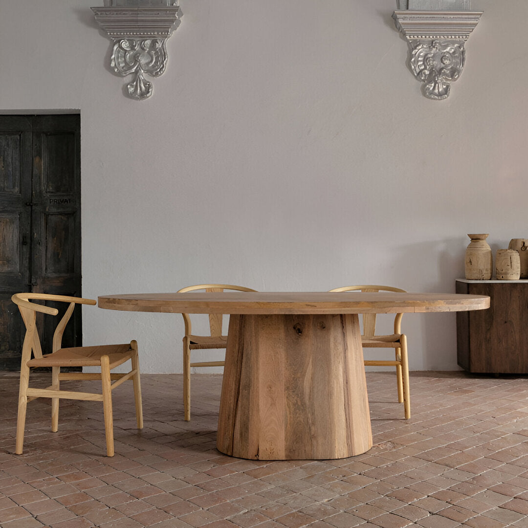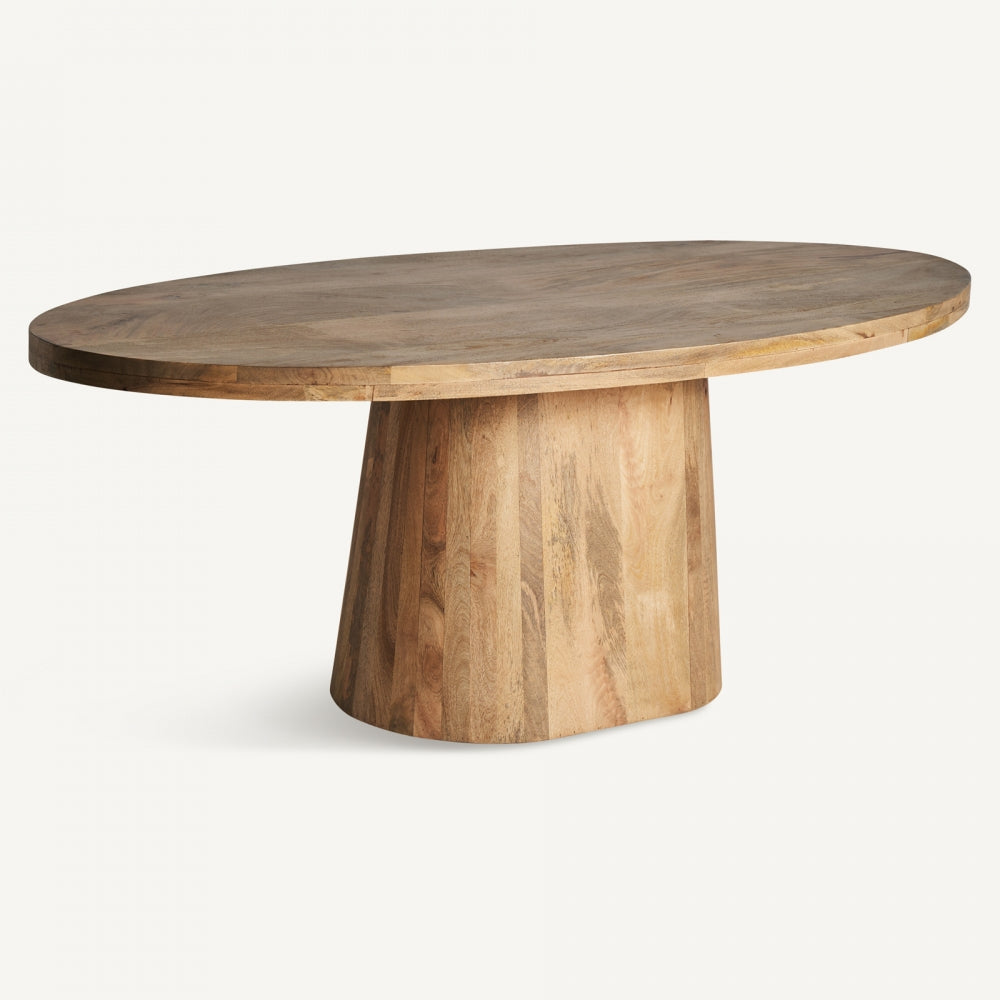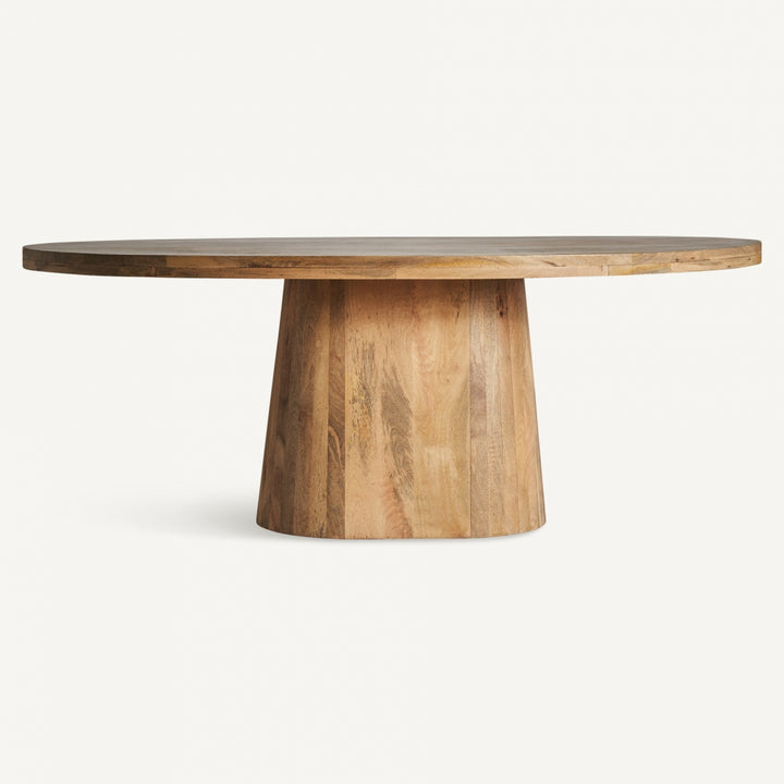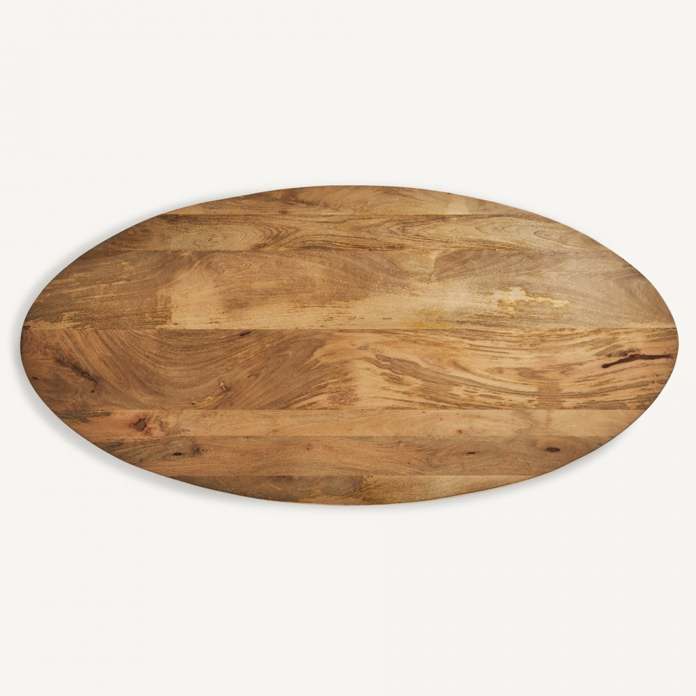 Lo stile etnico chic è caratterizzato da linee eleganti, materiali naturali e un design che unisce tradizione e modernità. Perfetto per creare ambienti accoglienti e sofisticati, questo stile valorizza il legno massello e le forme semplici ma raffinate, ideali per una sala da pranzo o un living moderno. Questo tavolo ovale, realizzato in legno massello di mango naturale, si distingue per la sua robustezza e l’estetica ricercata. Con un piano ampio di 200 x 100 cm e uno spessore di 2 cm, è perfetto come tavolo da pranzo per ospitare fino a 6 persone. La gamba centrale offre stabilità e libertà di movimento, rendendolo pratico e funzionale. I piedini regolabili garantiscono stabilità su ogni superficie. Questo tavolo ovale in legno massello diventa il fulcro della tua casa, combinando stile e funzionalità. Acquista online e arricchisci i tuoi spazi con un pezzo unico di qualità.