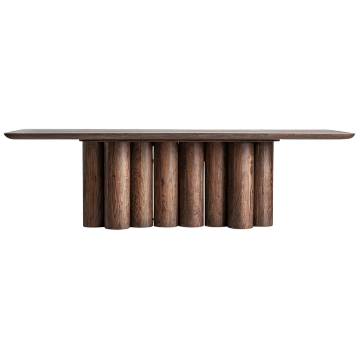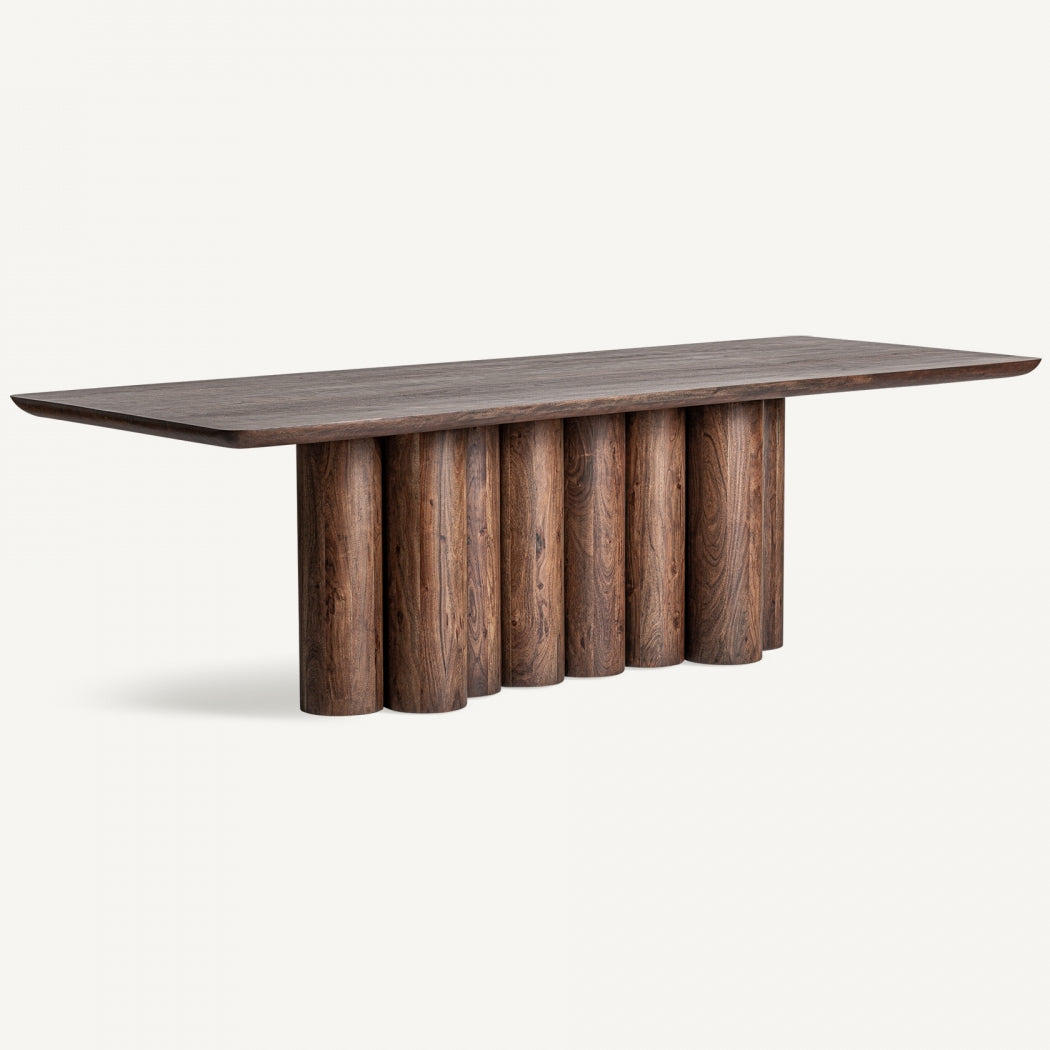 Lo stile Art Déco, simbolo di eleganza e raffinatezza, dona un tocco esclusivo a questo tavolo da pranzo artigianale, perfetto per ambienti moderni e ricercati. Le linee pulite e i materiali di alta qualità ne fanno un complemento ideale per arricchire la zona pranzo con classe e funzionalità. Realizzato in legno massello di acacia, noto per la sua resistenza e le sue venature naturali, questo tavolo vanta una finitura naturale che esalta l'autenticità del materiale. Con dimensioni di 260 x 95 x 77 cm e un peso di 164,7 kg, offre spazio per ospitare fino a 10 persone, rendendolo ideale per cene conviviali o pranzi eleganti. Le gambe robuste (151,5 x 41 x 69 cm) e il piano spesso 4 cm assicurano stabilità e durata, mentre le parti staccabili ne facilitano il trasporto. Perfetto per chi cerca tavoli di design in legno, arredi art déco e qualità artigianale.