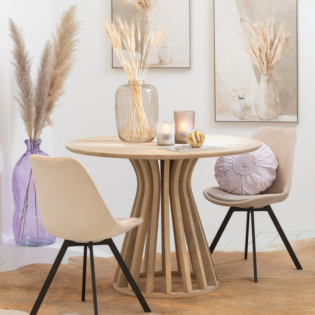 Dal design elegante e intramontabile, questo tavolo rotondo in stile francese è perfetto per aggiungere un tocco di raffinatezza al tuo spazio. Realizzato interamente in legno massello di mango naturale, si distingue per la qualità dei materiali e la solidità della costruzione. Il piano superiore da 3 cm di spessore esalta le venature naturali del legno, mentre la base centrale a doghe conferisce stabilità e un look unico, ideale per ambienti dallo stile rustico, provenzale o country chic. Grazie alla sua forma rotonda, crea un’atmosfera intima e accogliente, perfetta per pranzi e cene in compagnia. Questo tavolo è un’opzione eccellente per chi cerca tavoli rotondi online, che uniscono estetica e funzionalità. La lavorazione artigianale e i dettagli curati lo rendono una scelta esclusiva per la tua casa. Assemblaggio richiesto: No
