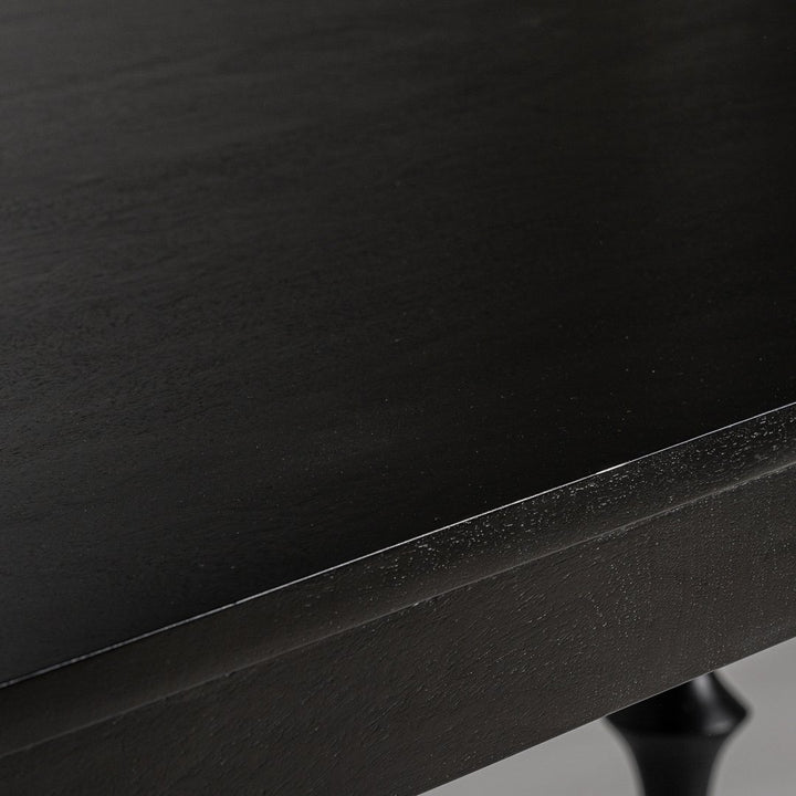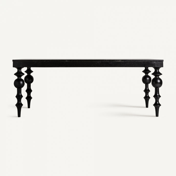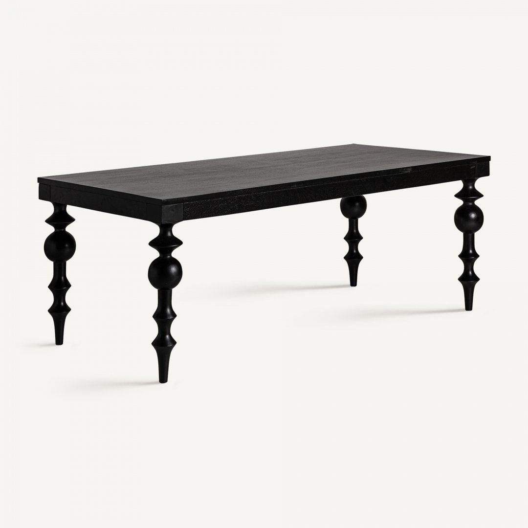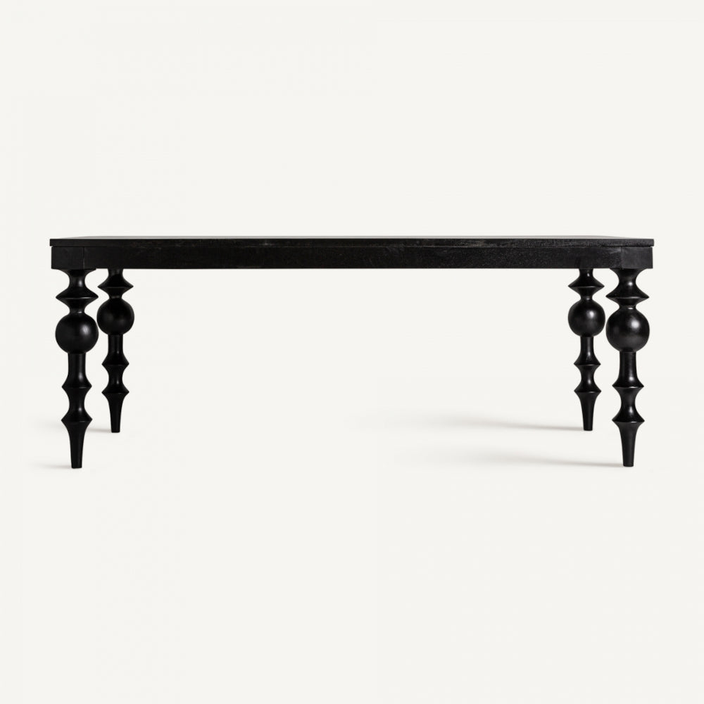 Il tavolo da pranzo nero chic, in stile contemporaneo, è una creazione elegante che aggiunge un tocco di modernità al tuo spazio. Realizzato con legno di mango, questo tavolo si distingue per il suo design contemporaneo e la versatilità.