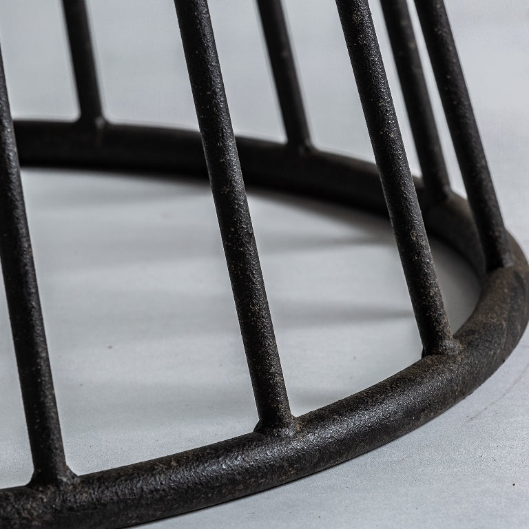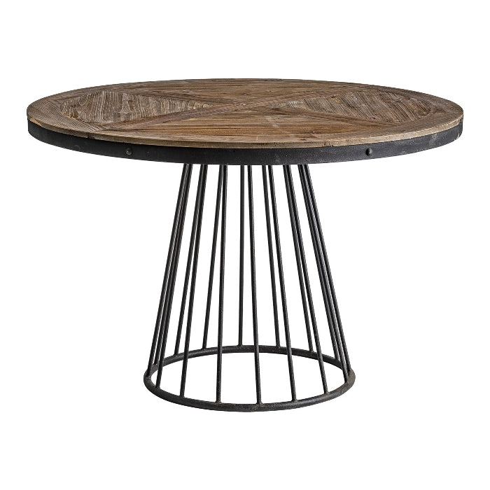 Lo stile industriale di questo tavolo è evidente nella combinazione di materiali e nella forma rotonda. Questo design versatile si adatta perfettamente a una varietà di ambienti, dalla cucina al soggiorno, creando un punto focale accattivante.