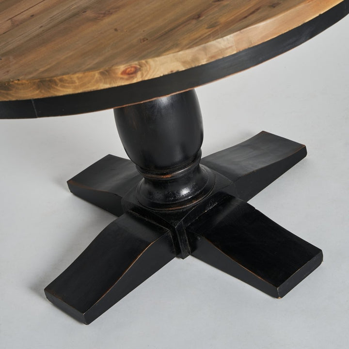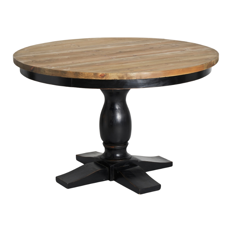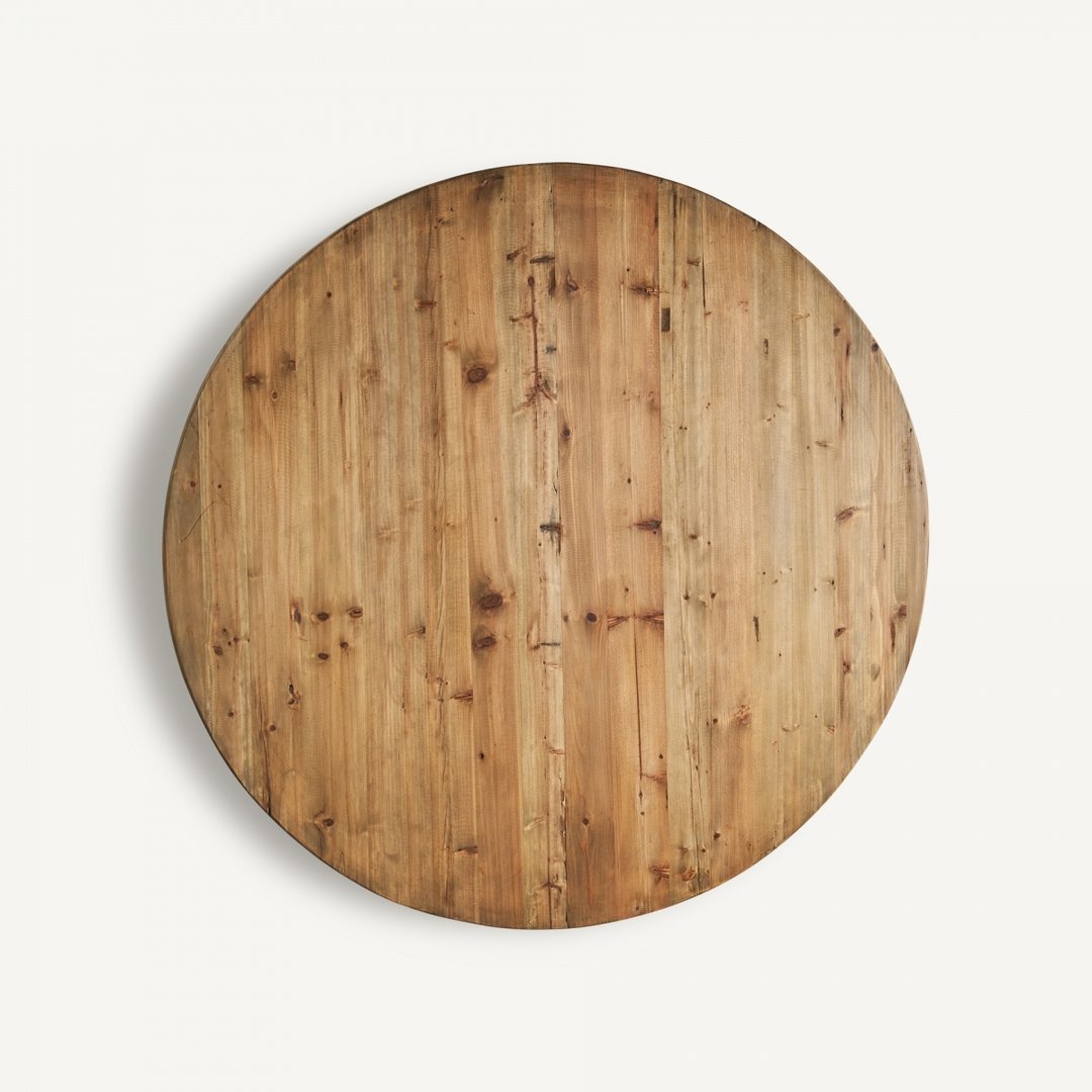 Questo tavolo da pranzo rotondo unisce uno stile shabby chic con un tocco moderno, grazie al suo design elegante e al monopiede nero. La combinazione di linee classiche e dettagli rustici crea un pezzo unico che si adatta perfettamente a interni sia tradizionali che contemporanei. Il tavolo è realizzato in legno di olmo, un materiale naturale e resistente, che contribuisce a dare carattere e solidità alla struttura. Il suo monopiede robusto è progettato per mantenere stabilità, rendendolo ideale per ospitare fino a 6 persone. Il piano rotondo da 120 cm di diametro permette di sfruttare al meglio lo spazio, favorendo un'atmosfera conviviale durante i pasti. Le sue dimensioni e il design lo rendono perfetto per sale da pranzo o cucine in cui l'estetica e la funzionalità sono ugualmente importanti. Ogni pezzo è unico, con variazioni di venature e tonalità che valorizzano l'autenticità e l’artigianalità della lavorazione.