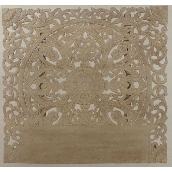 La testata letto orientale intagliata rappresenta l'essenza dello stile shabby chic, combinando l'eleganza esotica con un tocco romantico. Realizzata in legno massello naturale decapato, questa testata offre una decorazione intricata e dettagliata che dona un aspetto raffinato e accogliente alla camera da letto. Le dimensioni di cm 160 x 160 H 153 la rendono adatta a letti matrimoniali, aggiungendo un punto focale di grande impatto visivo. Perfetta per chi cerca testate letto shabby chic online, questa testata intagliata è ideale per creare un'atmosfera serena e sofisticata in qualsiasi spazio.
