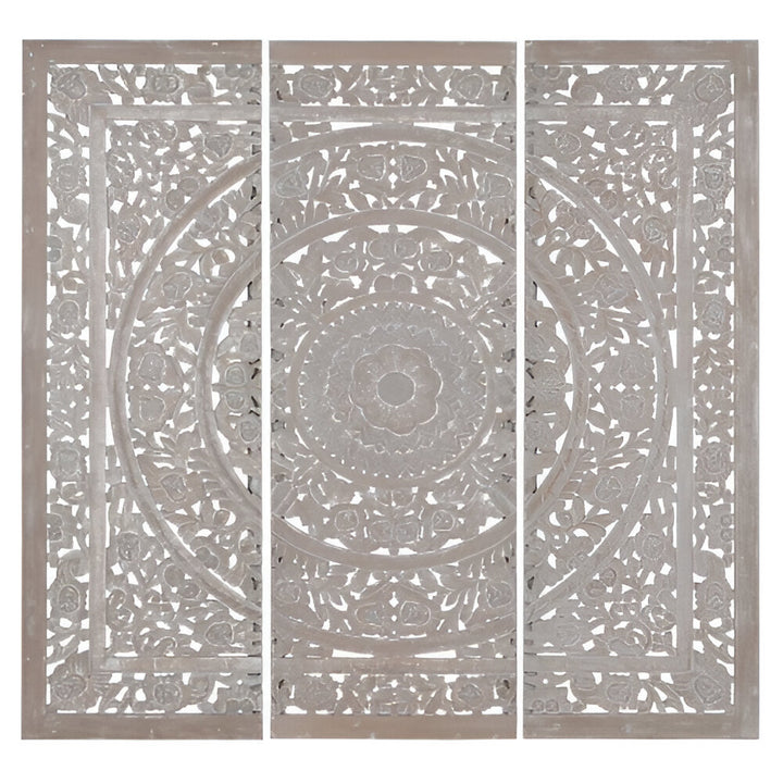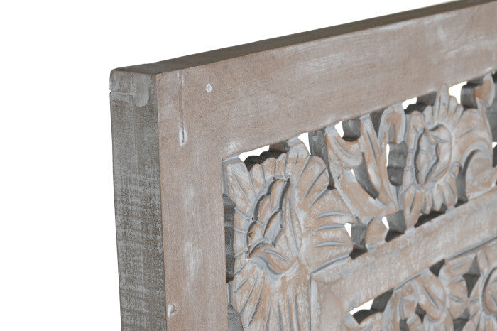 Lo stile orientale si esprime in questa elegante testata letto murale trittico, realizzata in legno naturale intagliato. Le dimensioni di 180 x 3,5 cm con un'altezza di 180 cm permettono di coprire l'intera parete dietro il letto, creando un’atmosfera suggestiva e raffinata. Il design dettagliato e i motivi intrecciati richiamano l'artigianato tradizionale, rendendo questa testata un elemento d'arredo perfetto per chi cerca testata orientale online. Ideale per camere da letto dallo stile esotico, questa testata aggiunge un tocco di lusso e originalità a qualsiasi ambiente.