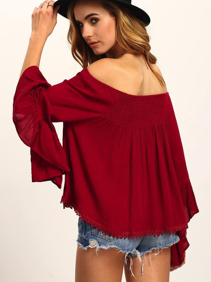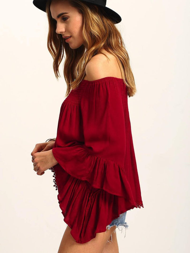 Top rosso maniche a campana