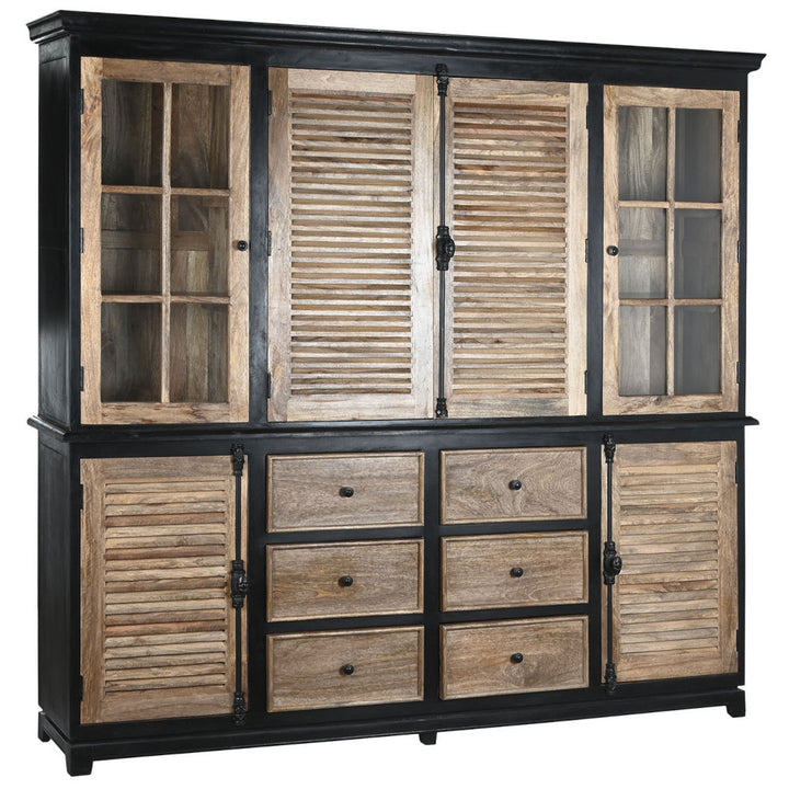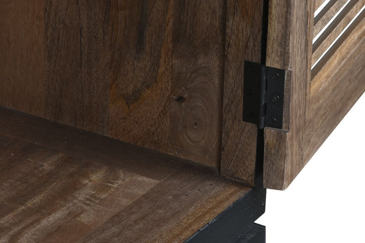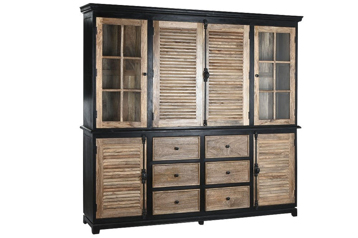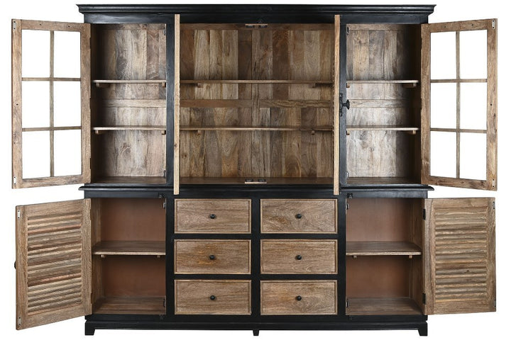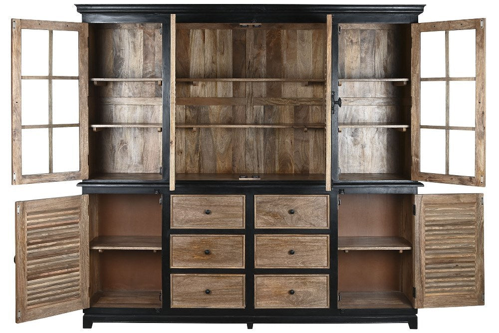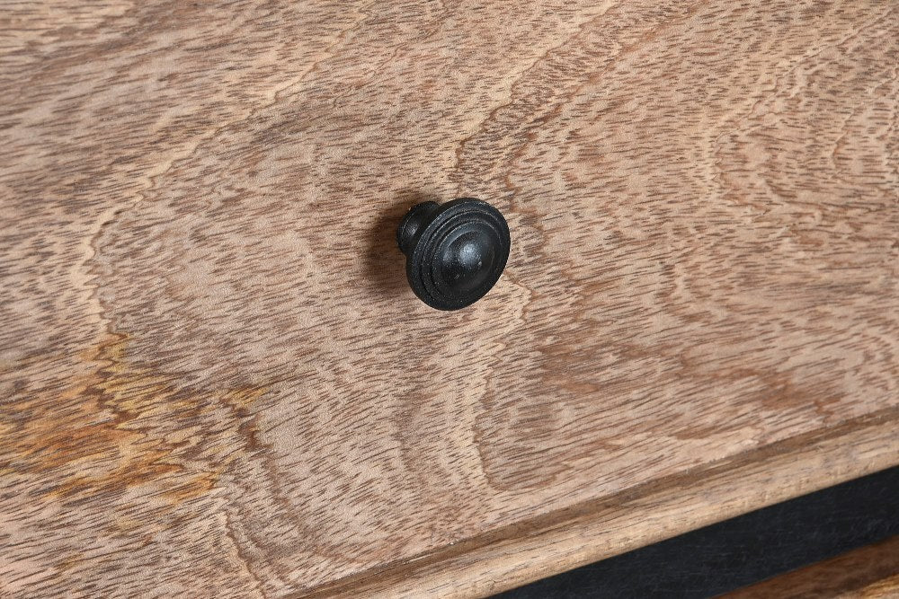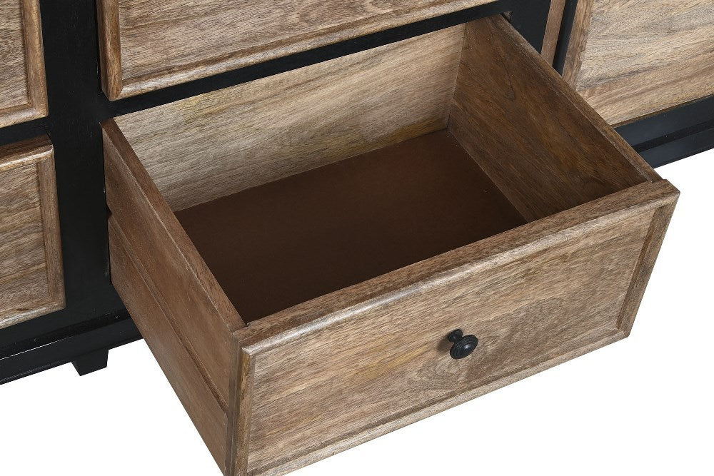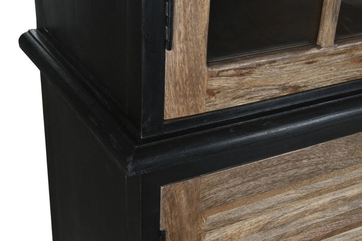 Vetrina Credenza Industrial - Legno Massello di Mango, Naturale e Nero
