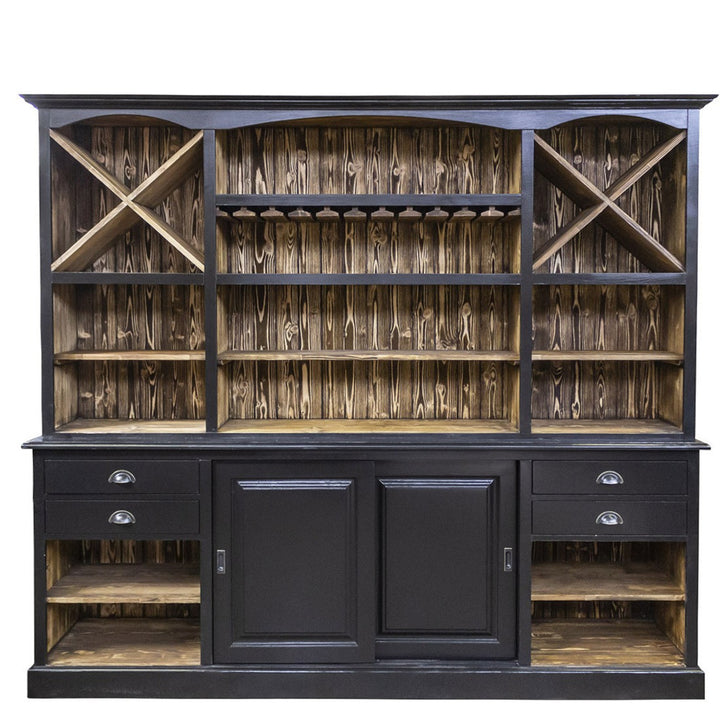 Credenza Alta Modulare con Ante Scorrevoli, Cassetti e Portabottiglie Design stile Vintage Industrial