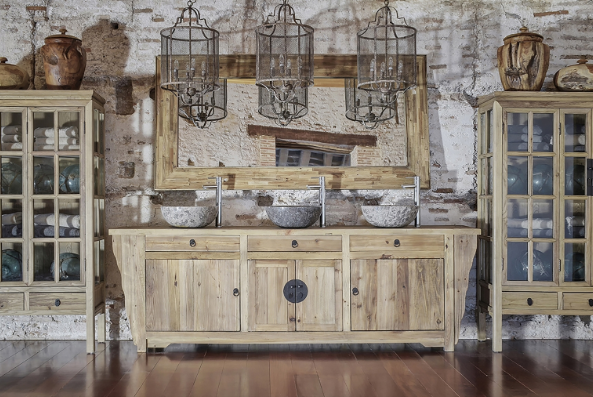 Vetrina Orientale in Legno di Olmo Naturale | Stile Coloniale