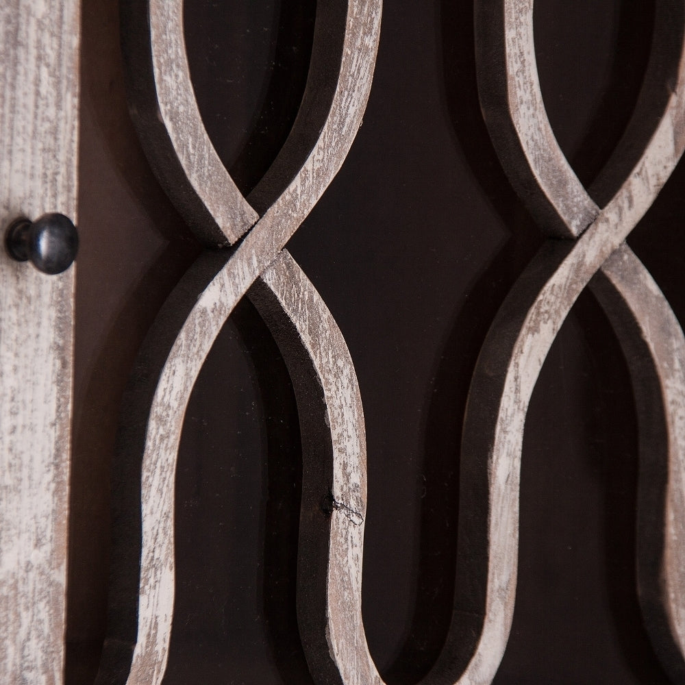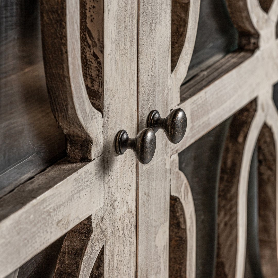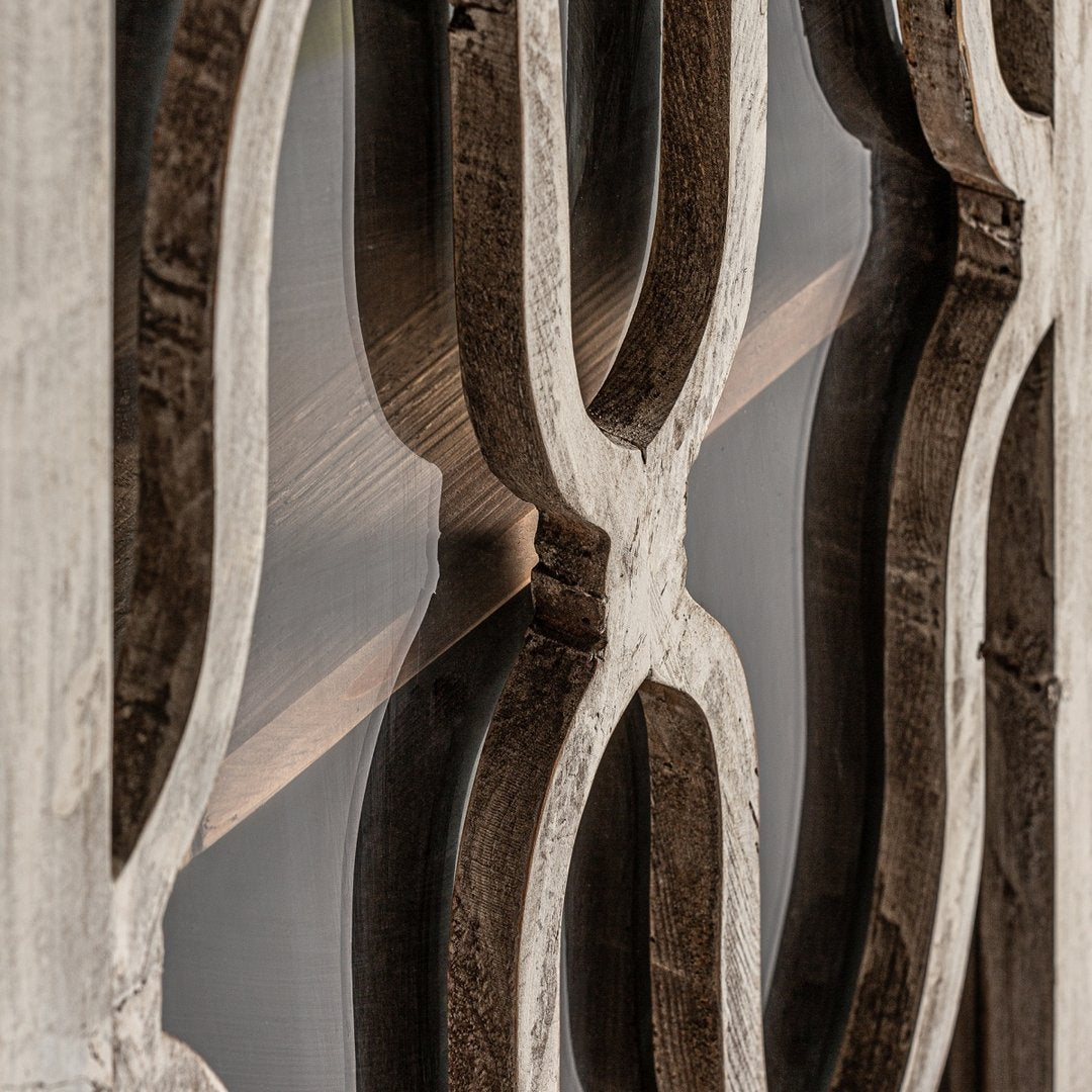 La nostra vetrina è realizzata con una combinazione di legno di pino riciclato e ferro, conferendo al mobile un aspetto rustico e industriale. Grazie alla lavorazione artigianale, comprendiamo che le variazioni di tonalità e le imperfezioni come crepe, nodi e marchi sono un valore aggiunto che rende ogni pezzo unico.
