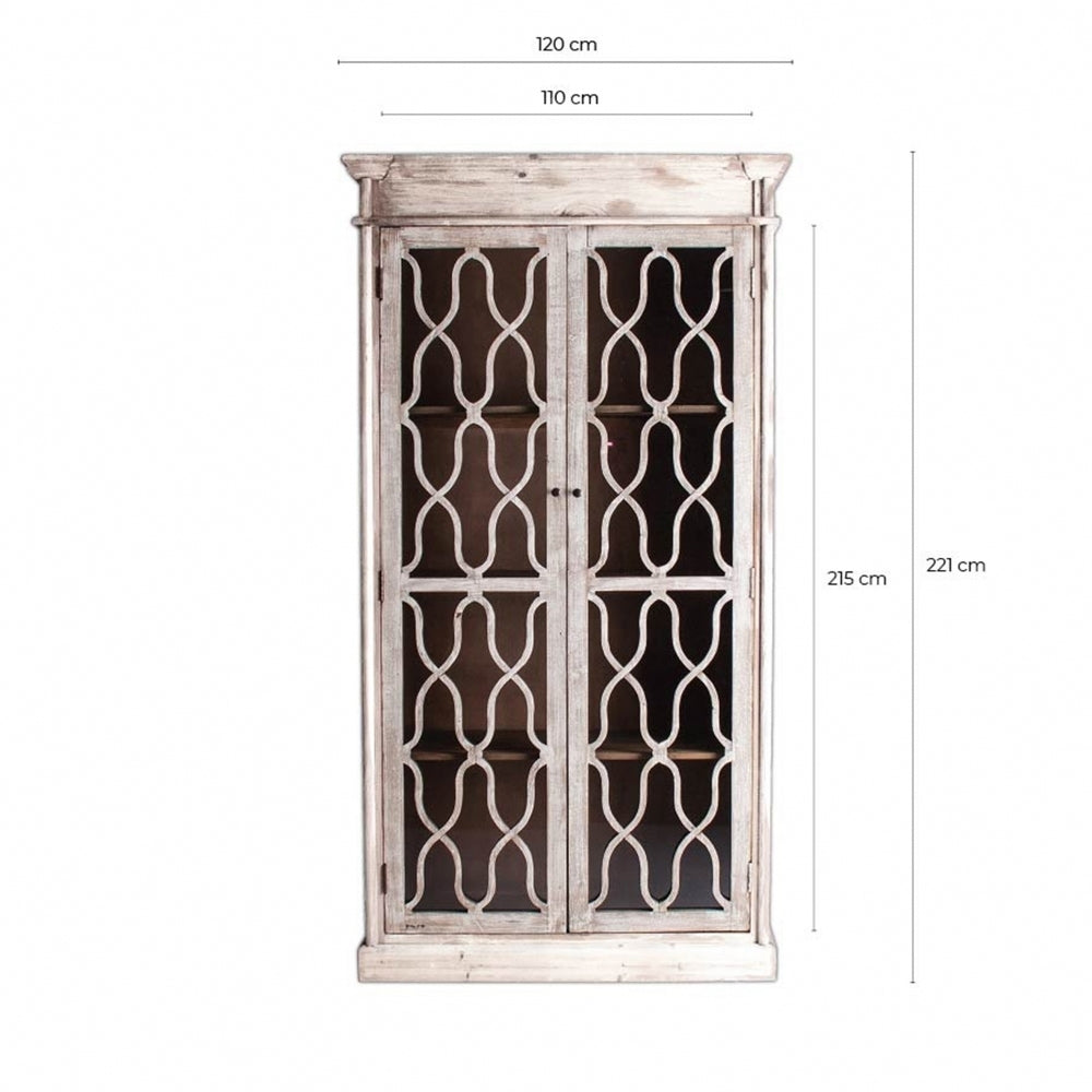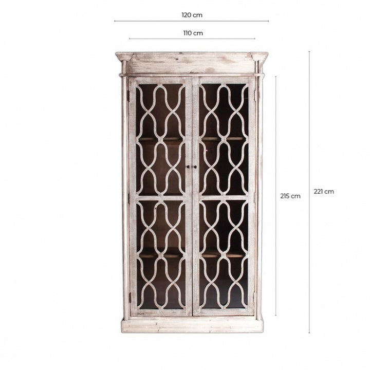 Le dimensioni precise della vetrina sono 120 cm di lunghezza, 50 cm di larghezza e 221 cm di altezza. Con un peso di 85,0 kg, la vetrina è solida e stabile.