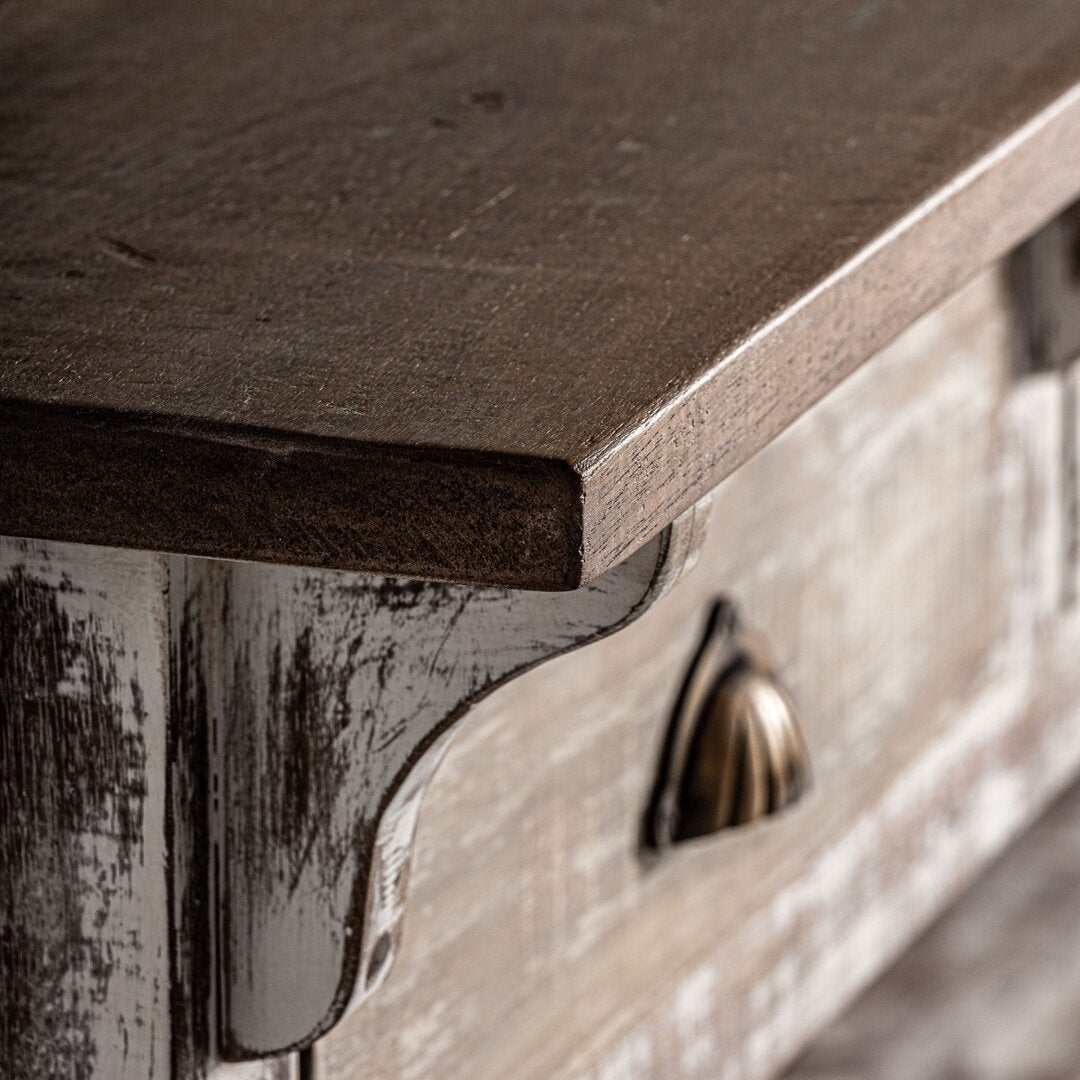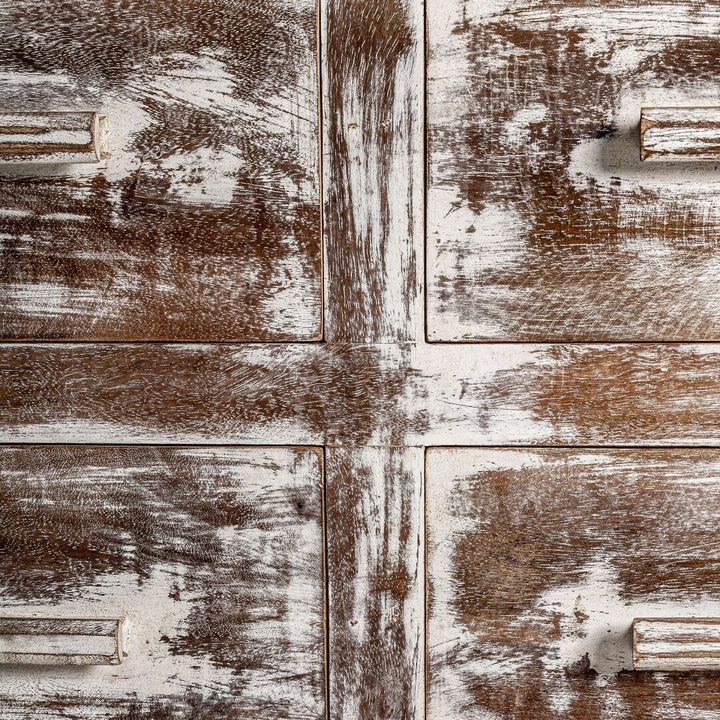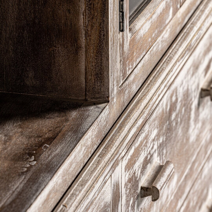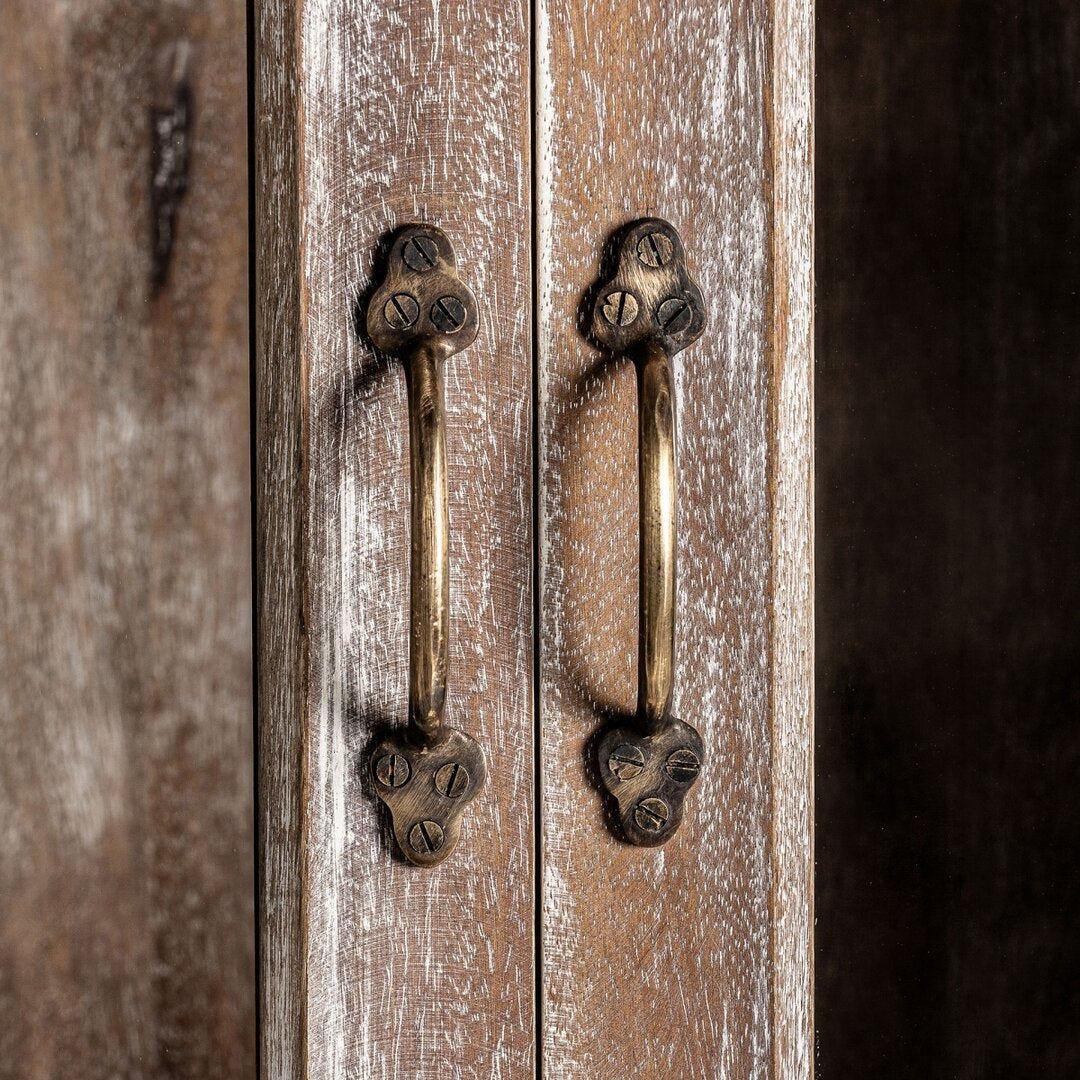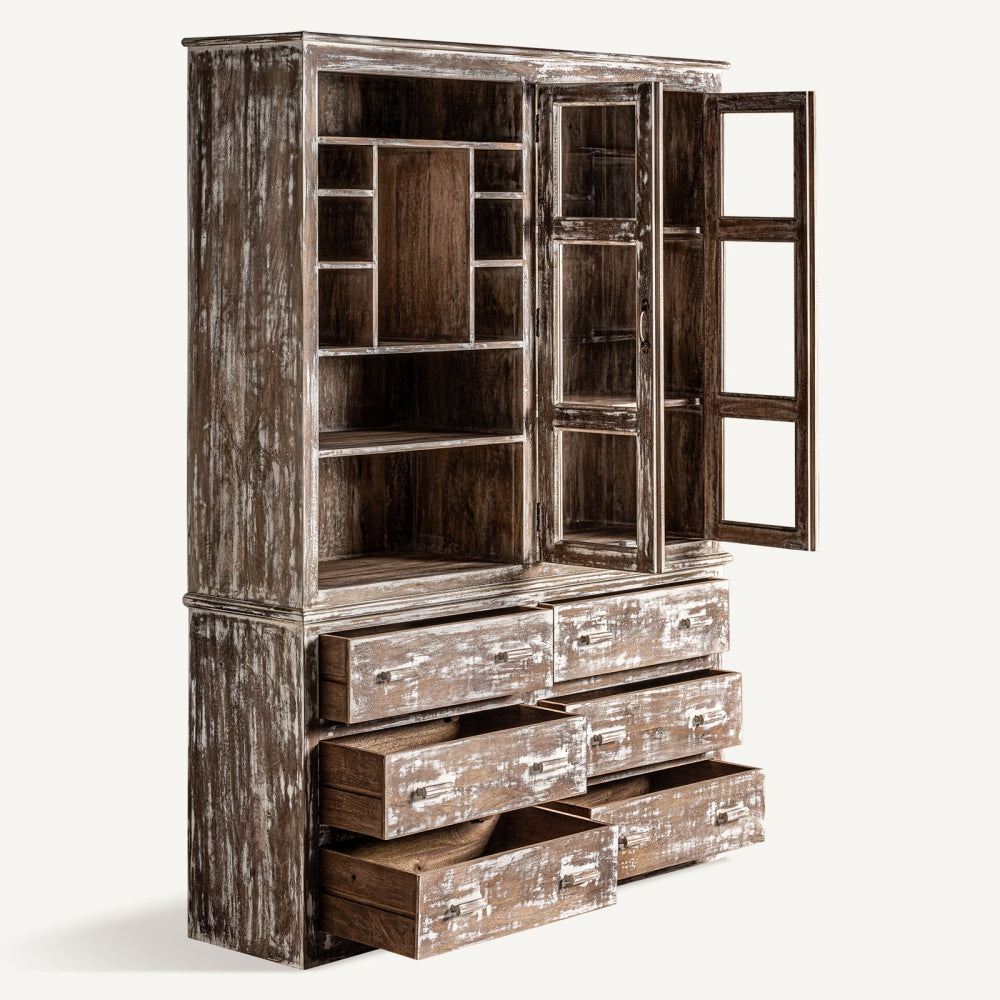 Lo stile rustico vintage è ideale per arredare ambienti caldi e accoglienti, caratterizzati da materiali naturali e dettagli dall’aspetto vissuto. Questa vetrina in legno, realizzata in pregiato legno di mango decapato, combina eleganza e funzionalità con un design in bianco invecchiato e marrone, arricchito da dettagli in vetro. Dotata di 6 cassetti con guide integrate e 2 ante in vetro, offre ampio spazio per l’organizzazione e l’esposizione di oggetti, mantenendo un’estetica raffinata. Con 3 ripiani fissi e un’altezza tra ripiani di 35 cm, è perfetta per oggetti decorativi o funzionali. Il piano spesso 2 cm e una struttura robusta garantiscono una portata di 80 kg complessivi, rendendo questa vetrina rustica una scelta pratica e durevole. Acquista online per aggiungere un tocco di charme e autenticità alla tua casa.