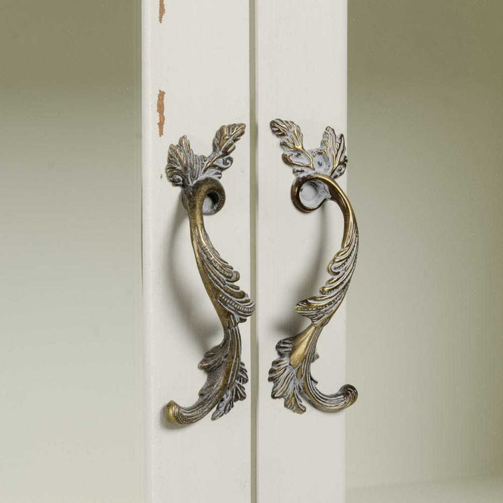 Il design invecchiato e la finitura crema abete si fondono armoniosamente per creare un pezzo che incanta gli occhi e aggiunge calore autentico al tuo ambiente. Con questa vetrina shabby chic bianca con cassetti, puoi trasformare il tuo spazio in un rifugio provenzale che emana charme e nostalgia.
